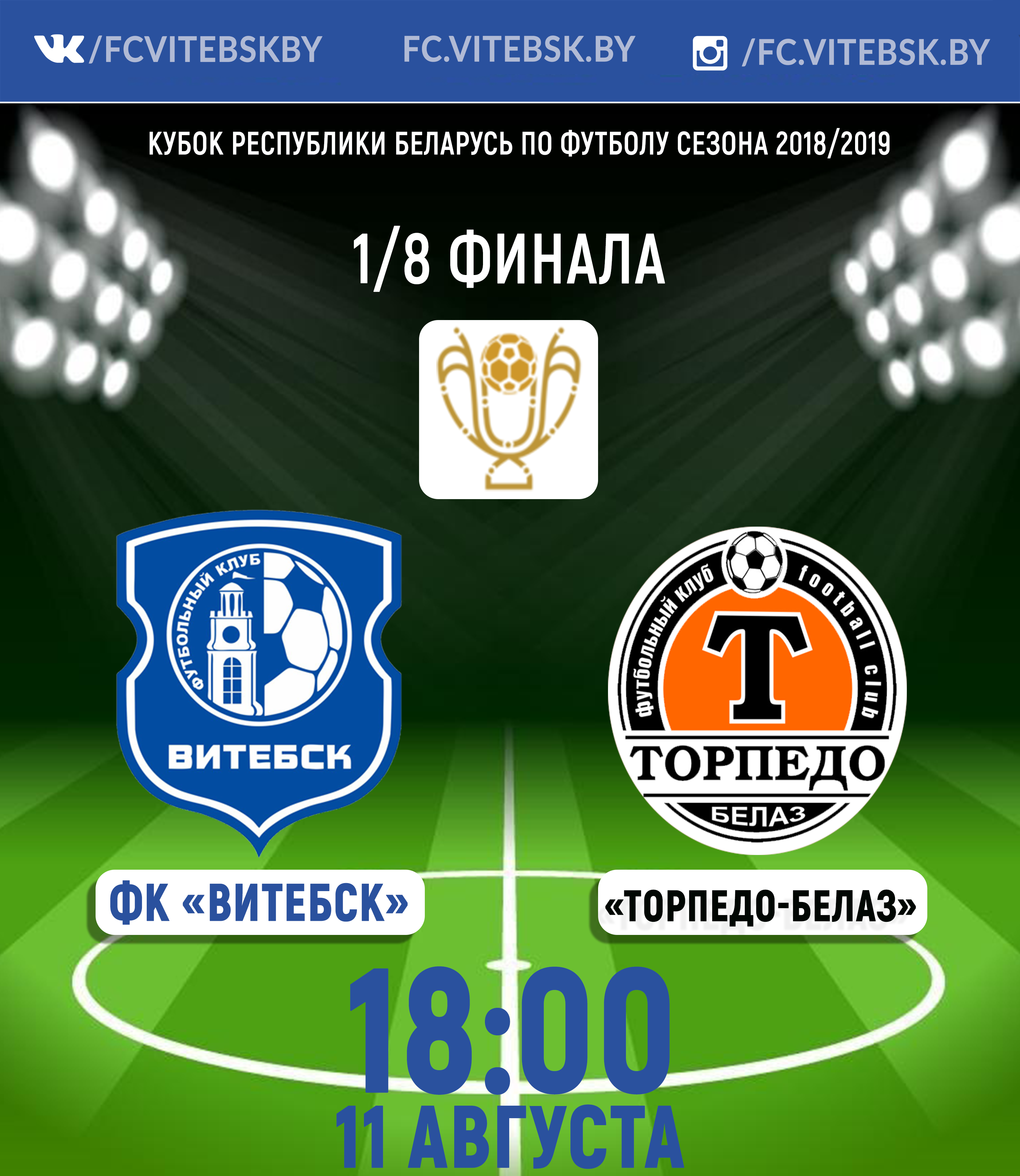 В субботу, 11 августа, ФК «Витебск» в рамках 1/8 финала Кубка Беларуси на своем поле примет жодинское «Торпедо-БелАЗ».