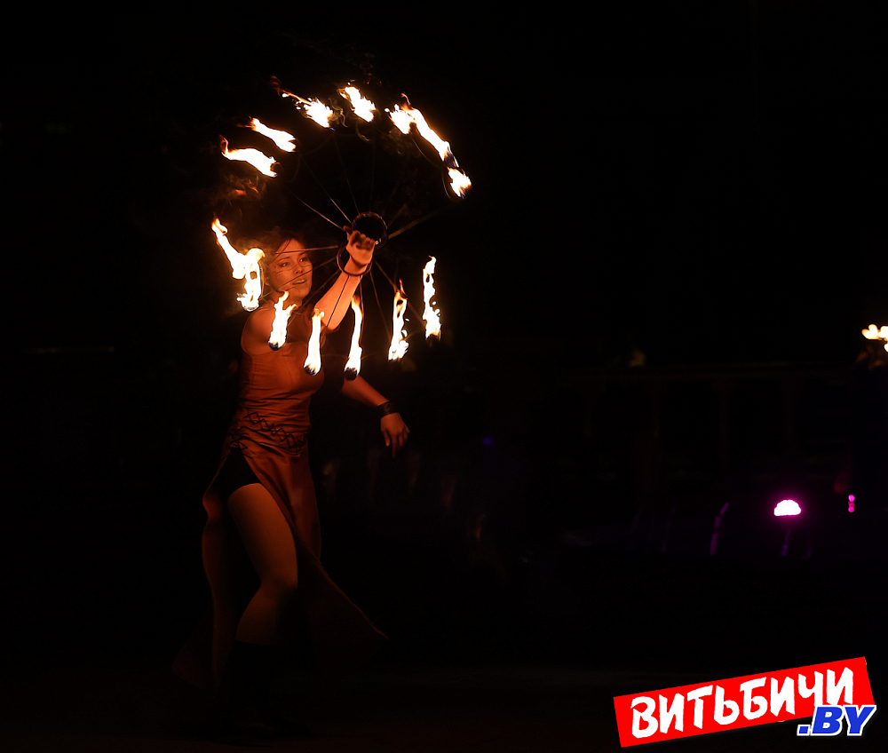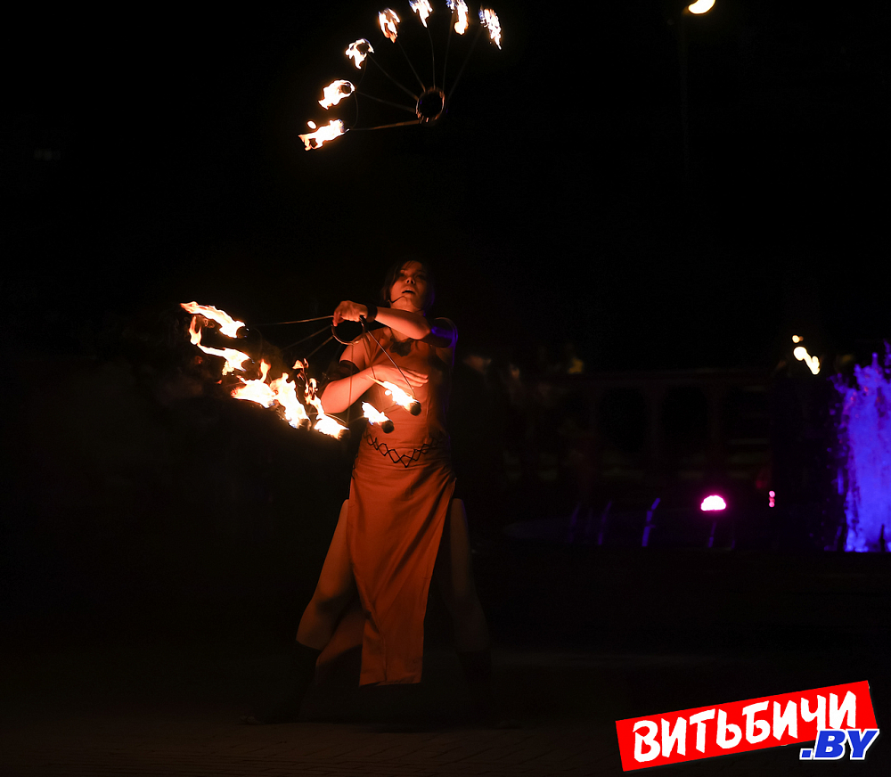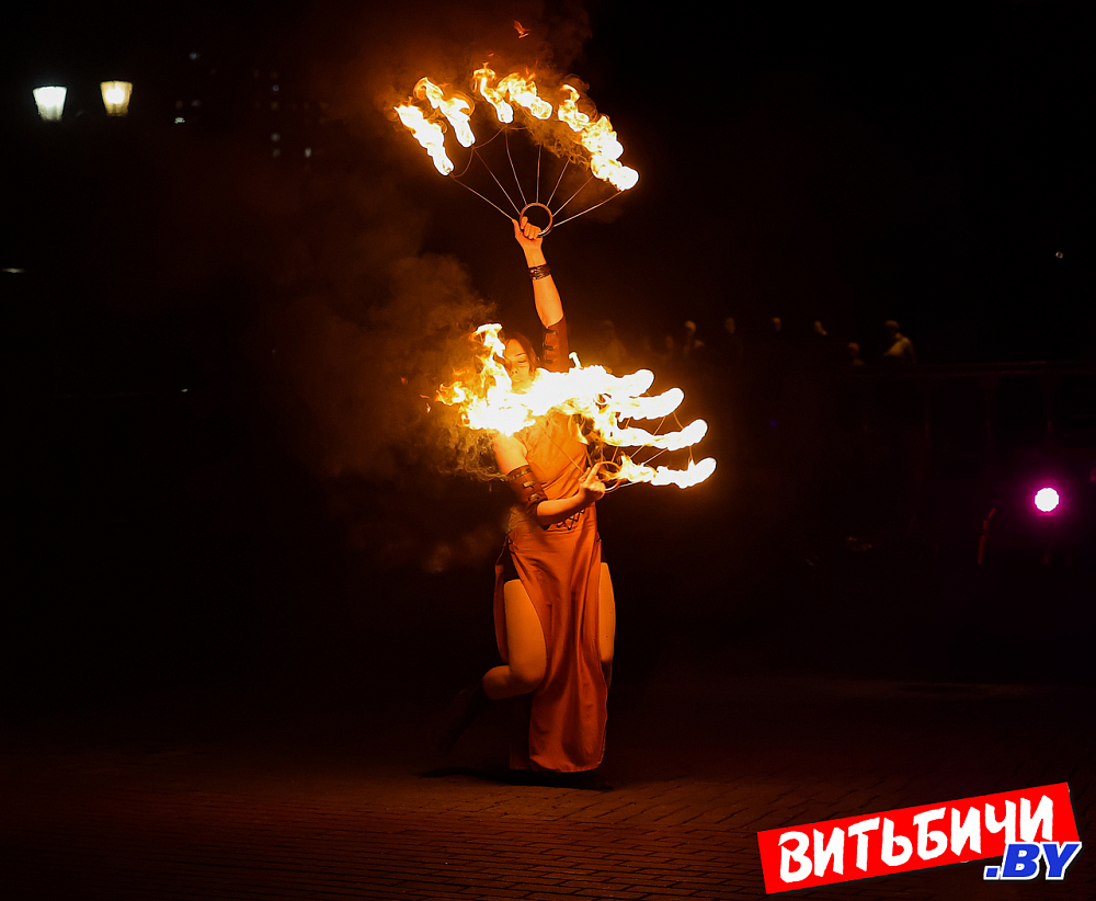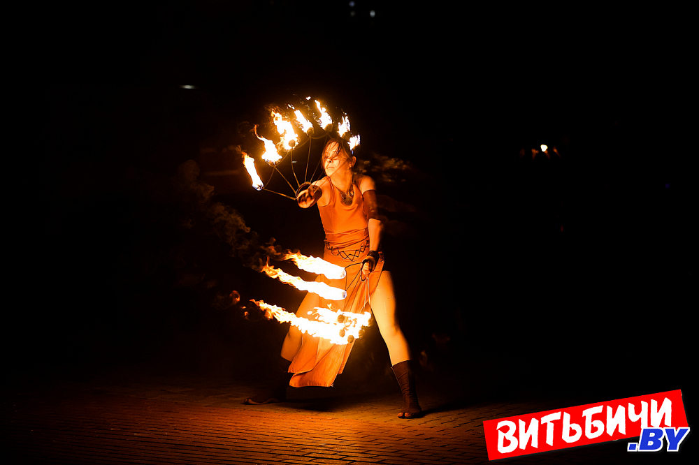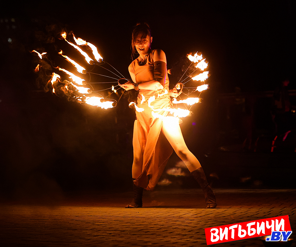 В постановках фаерщики использовали элементы хореографии, циркового и театрального искусства. Виртуозные навыки «пламенной» работы, создавая потрясающие огненные рисунки, показали опытные мастера, а также ребята из коллектива Cool Kids. Изумляли публику и выступления молодых фаерщиков из AGNI шоу. Эффектно выглядела звезда вечера минский мастер огненных дел Катерина Шанько. Ее сольный номер с горящими «веерами» завораживал, глаз было не отвести от этого картинного номера. Кстати, Катерину знают по выступлениям не только в Беларуси, но и в России, Украине, где она дает мастер-классы.