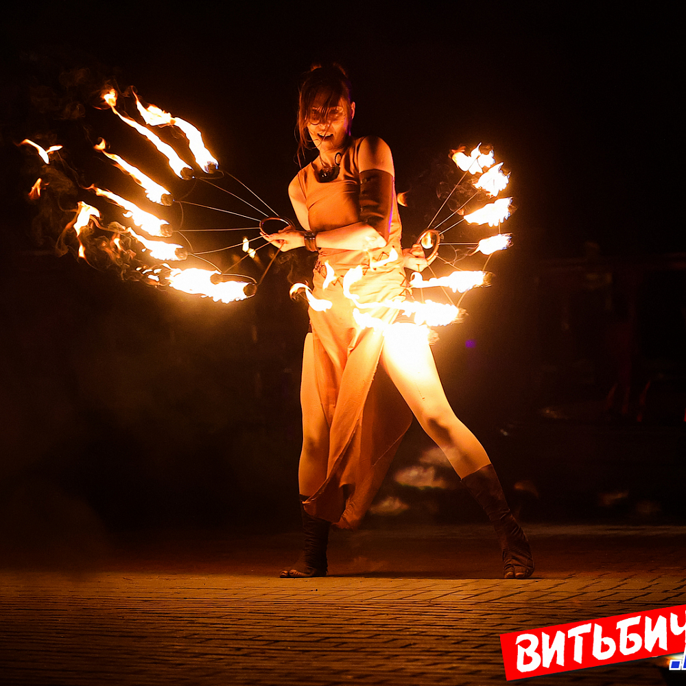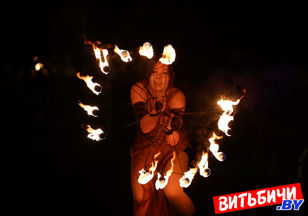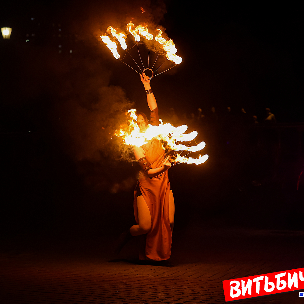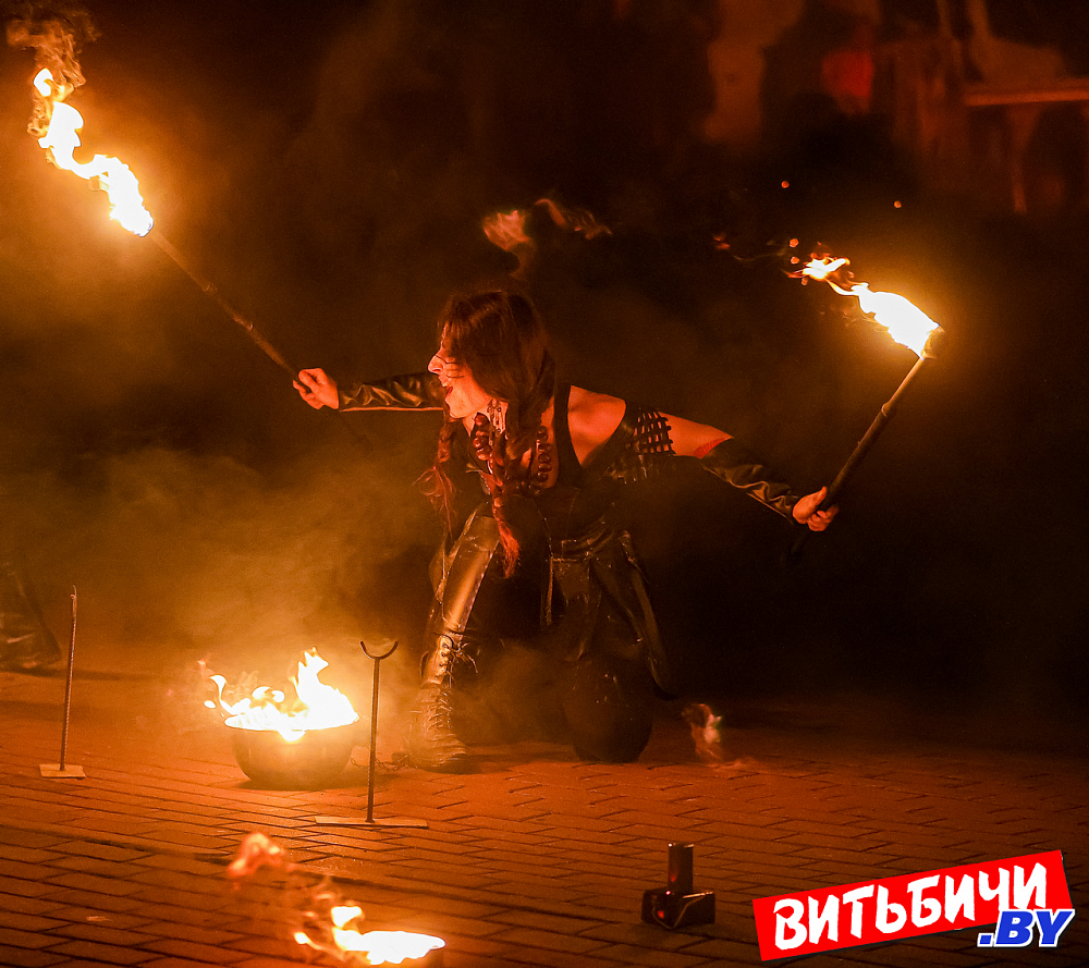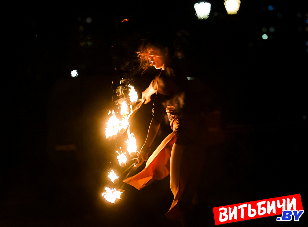 В постановках фаерщики использовали элементы хореографии, циркового и театрального искусства. Виртуозные навыки «пламенной» работы, создавая потрясающие огненные рисунки, показали опытные мастера, а также ребята из коллектива Cool Kids. Изумляли публику и выступления молодых фаерщиков из AGNI шоу. Эффектно выглядела звезда вечера минский мастер огненных дел Катерина Шанько. Ее сольный номер с горящими «веерами» завораживал, глаз было не отвести от этого картинного номера. Кстати, Катерину знают по выступлениям не только в Беларуси, но и в России, Украине, где она дает мастер-классы.