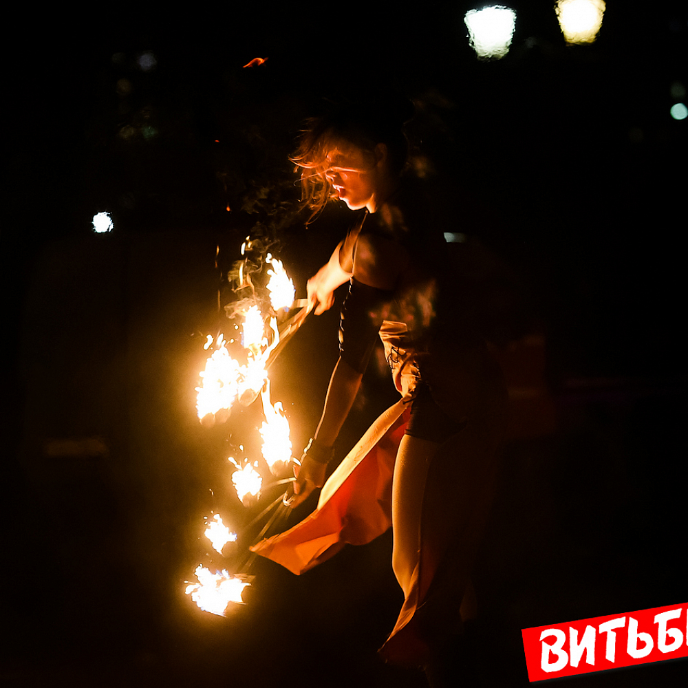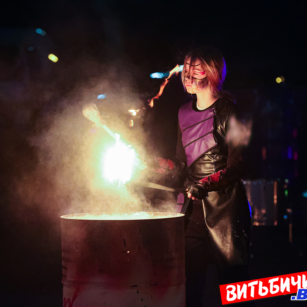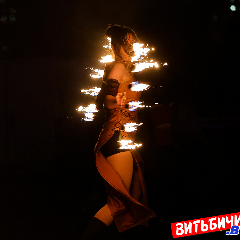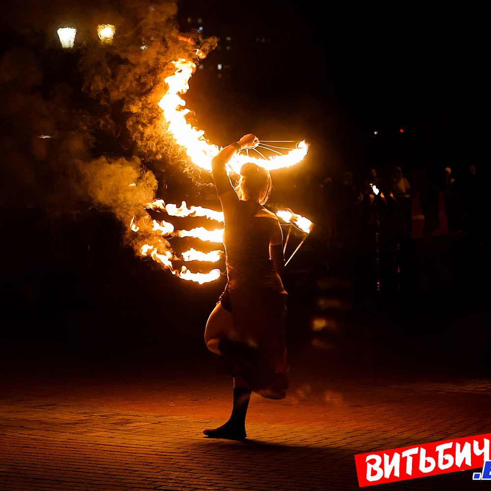 Завораживающее искусство управления огнем, захватывающее эффектное представление под бодрящую динамичную музыку представили мастера из коллективов огненного шоу Витебска («Праздничный реактор «АТОМА», детская студия flow art и светового шоу Cool Kids, AGNI шоу), Минска и Речицы. Все они стали участниками первого микрофестиваля огненного искусства BURN OUT.