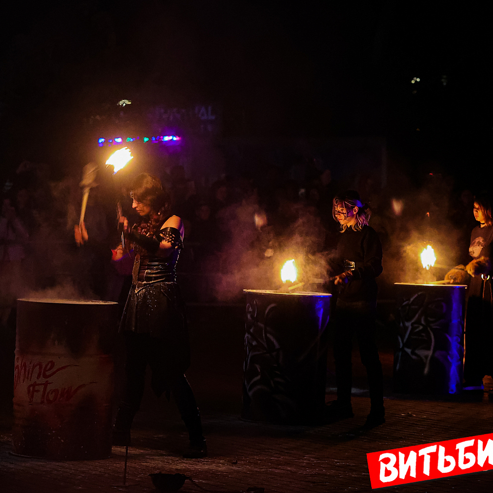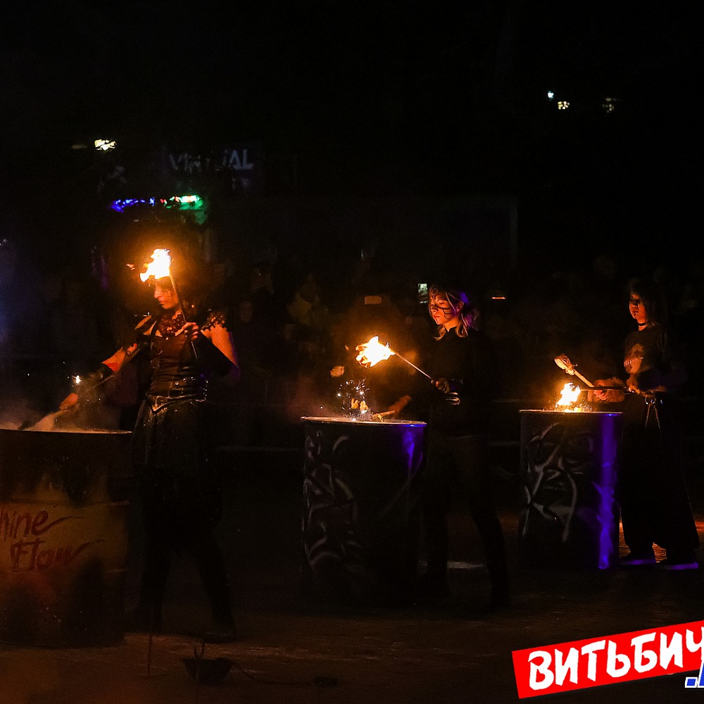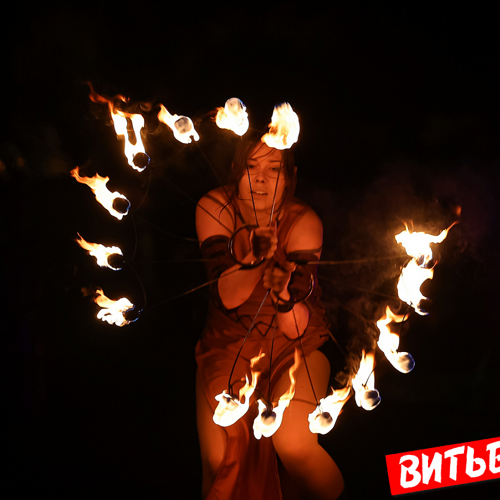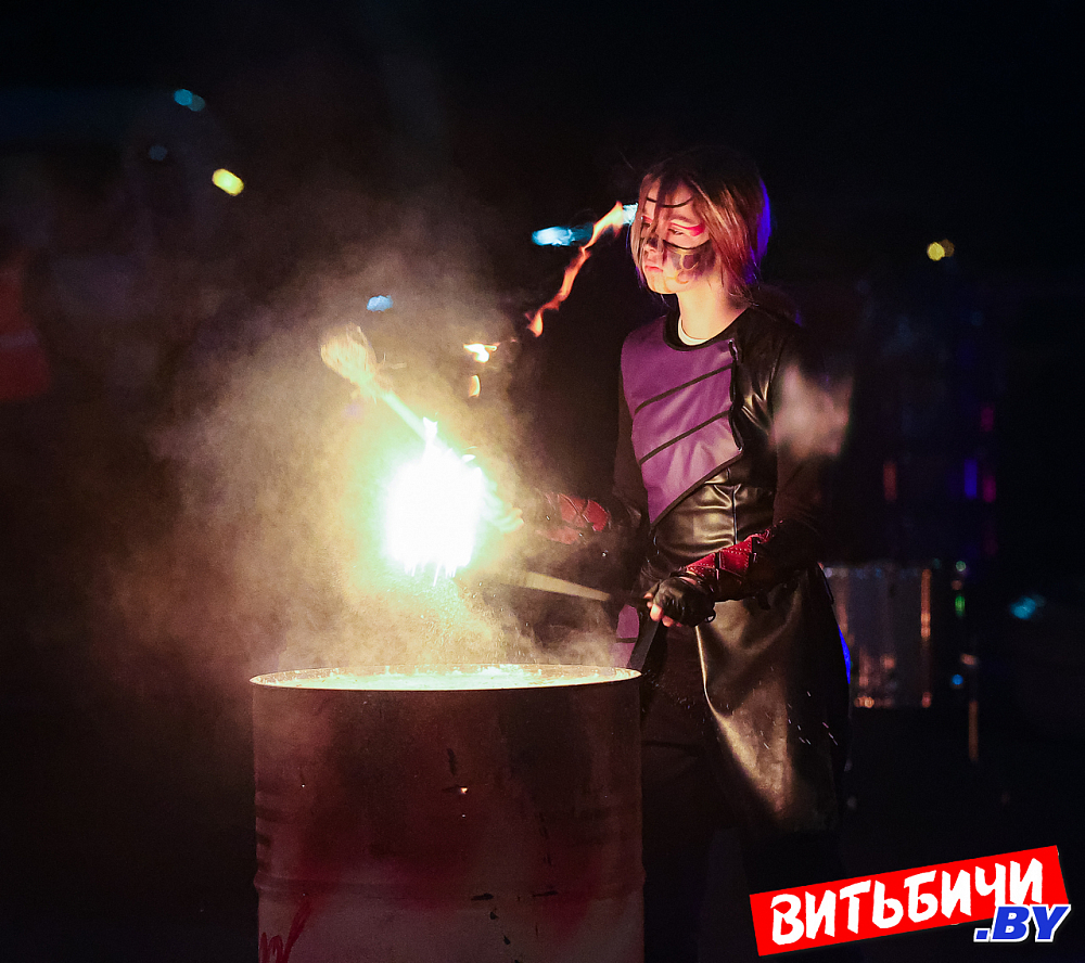Завораживающее искусство управления огнем, захватывающее эффектное представление под бодрящую динамичную музыку представили мастера из коллективов огненного шоу Витебска («Праздничный реактор «АТОМА», детская студия flow art и светового шоу Cool Kids, AGNI шоу), Минска и Речицы. Все они стали участниками первого микрофестиваля огненного искусства BURN OUT.