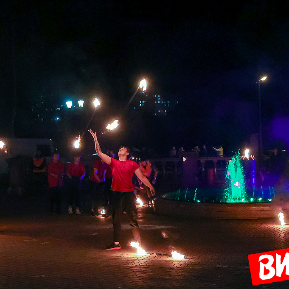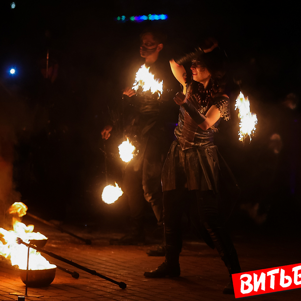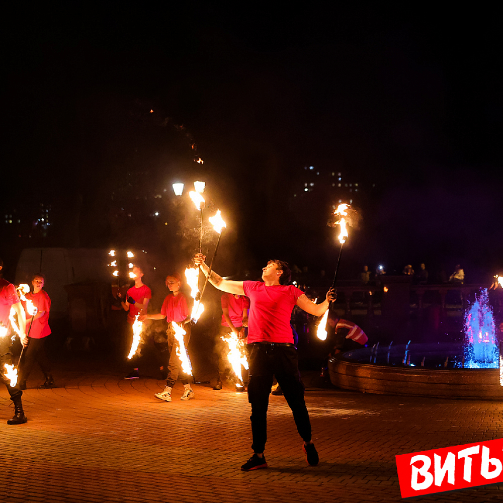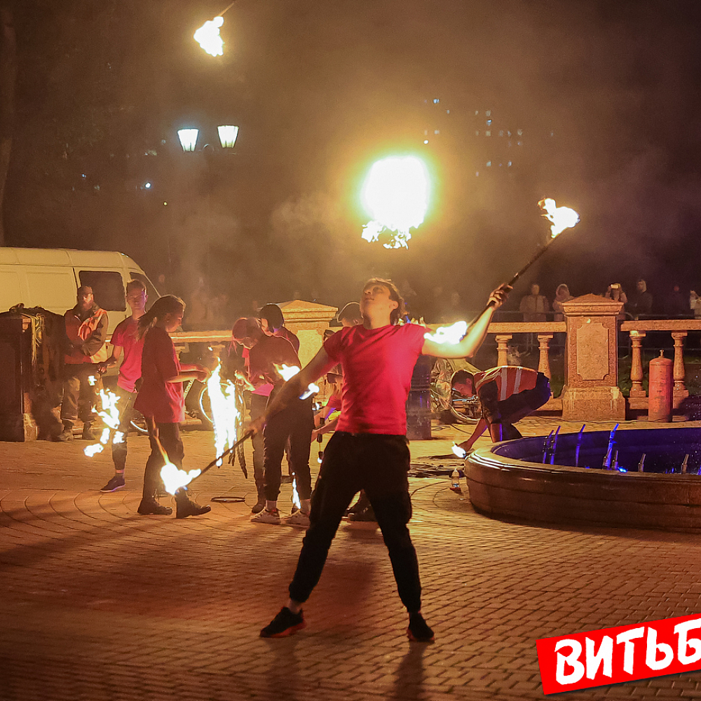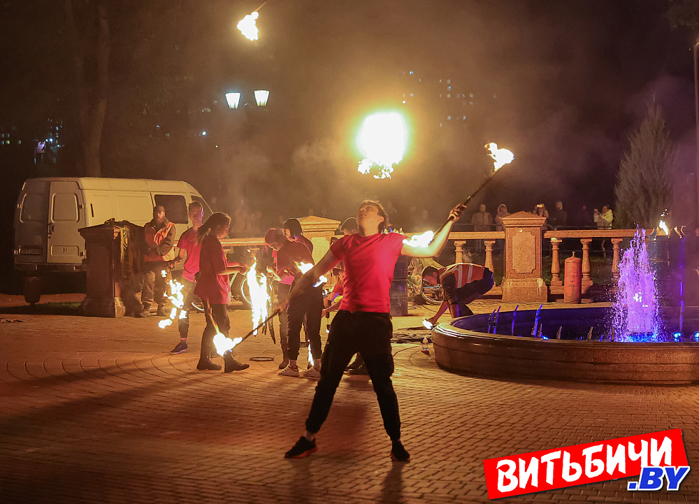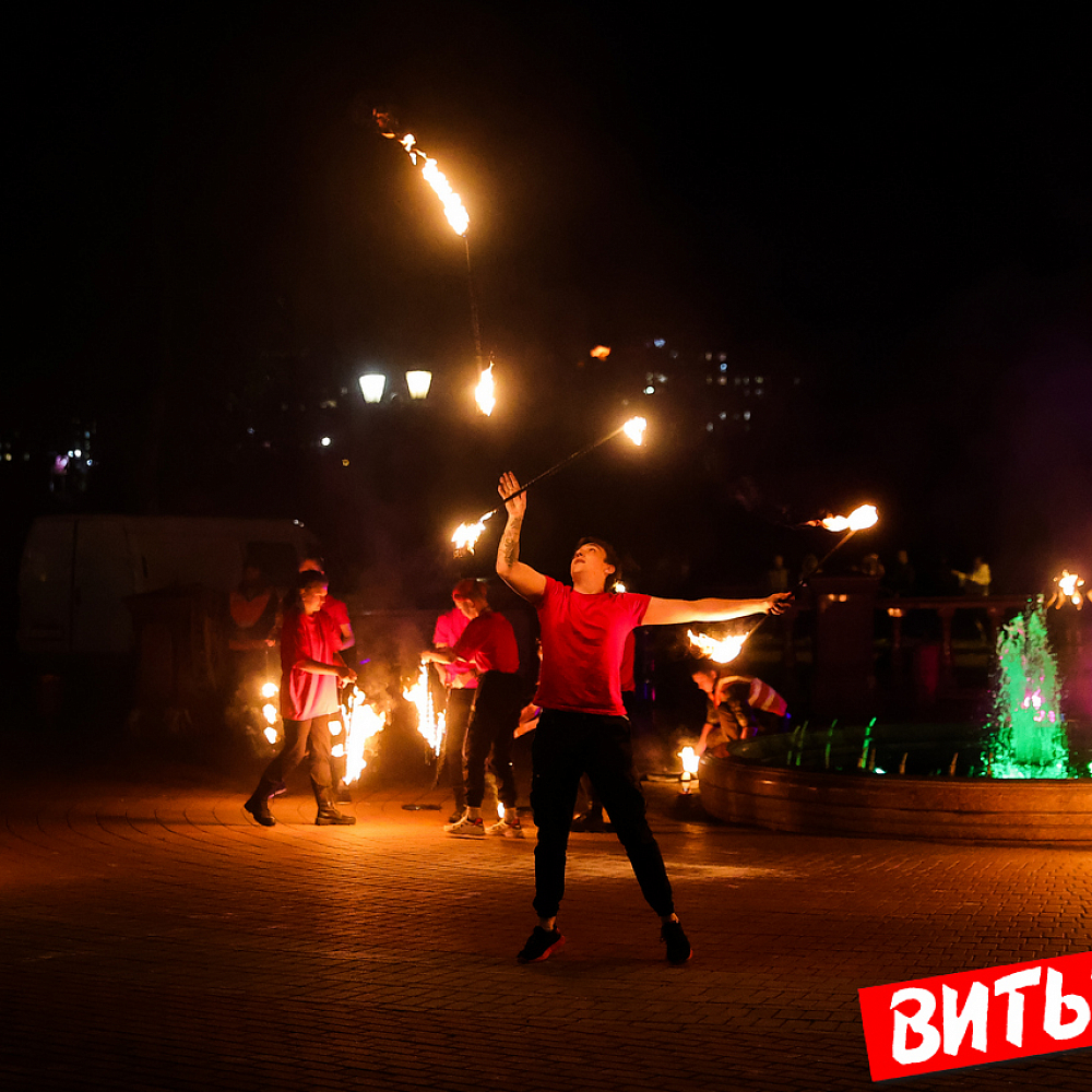 Зажгли ночь. Посмотрите, какое представление устроили фаерщики на набережной Западной Двины в парке Победителей в Витебске