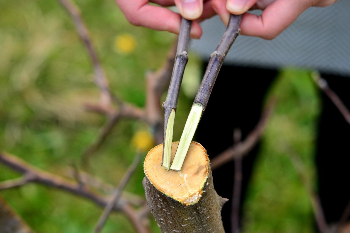 Черенки нарезают с однолетних побегов здорового, хорошо плодоносящего дерева возрастом от трех до десяти лет. Лучше всего, чтобы привой находился на южной стороне центральной части кроны. Размер черенков должен быть 30–40 сантиметров с 3–4 хорошо выраженными почками, толщиной – с карандаш, диаметром около 7 миллиметров. Нарезают веточки хорошо заточенным ножом или секатором, стараясь не прикасаться срезов руками, чтобы не занести инфекцию и ускорить приживаемость на подвое.