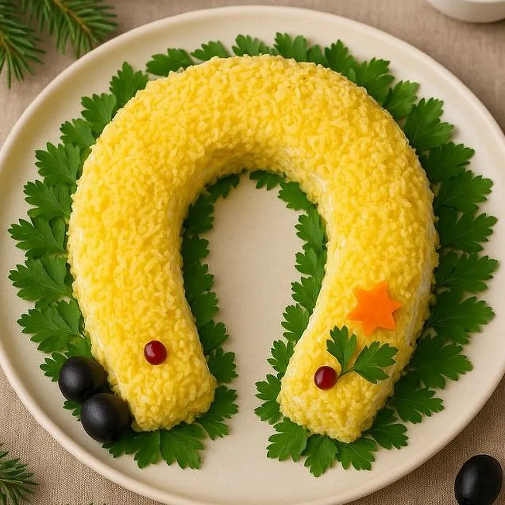 В 2026 году на столе обязательно должно быть блюдо, которое символизирует удачу, открытие новых горизонтов. К примеру, салат в форме подковы, который в год Лошади становится особенно актуальным.