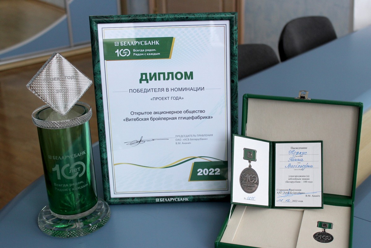 Вместе к успеху уже почти 15 лет с Беларусбанком идет ОАО «Витебская бройлерная птицефабрика», признанное по итогам 2022 года победителем в специальной номинации «Проект года». Это единственное в регионе предприятие с общим замкнутым производственным циклом: от получения инкубационных яиц и выращивания молодняка до полной переработки мяса птицы в готовые полуфабрикаты, копчености, колбасные изделия. Как рассказала его генеральный директор Анна Норкус, при кредитной поддержке Беларусбанка удалось осуществить ряд инвестиционных проектов, один из последних — «Строительство объектов производственного назначения» (их будет пять) в объеме 350,2 млн рублей. В конце 2021-го и в начале этого года досрочно были введены в эксплуатацию бройлерный цех № 3 и участок убоя и переработки крупного рогатого скота вблизи деревни Тригубцы Витебского района. Данный проект позволит увеличить объем производства, повысить качество выпускаемой продукции, увеличить прибыль и повысить рентабельность. Мясо птицы сегодня поставляется как на внутренний, так и на внешний рынки. Кстати, львиную долю экспортных и импортных операций предприятие совершает через Беларусбанк.