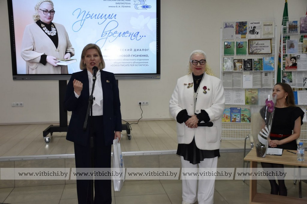 7 апреля / «Витьбичи» / Виталий Сеньков /. В Витебской областной библиотеке имени В. И. Ленина состоялась поэтическая встреча «Пришли времена», посвященная Году белорусских женщин, с поэтессой, прозаиком, публицистом, общественным деятелем Тамарой Красновой-Гусаченко.