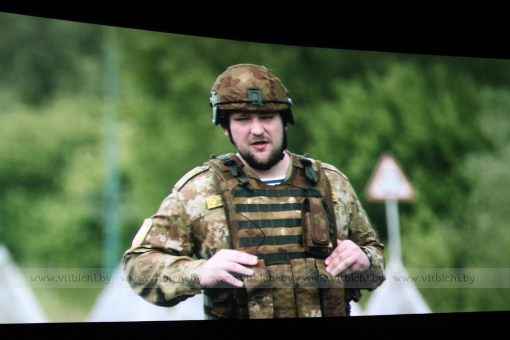 Затем к зрителям обратился заместитель военного комиссара Витебской области полковник Игорь Лазовский. Неспокойно за пределами Беларуси, сказал он. Идут боевые действия за нашими южными рубежами. И неслучаен слоган фильма: «Сохранение мира в условиях войны – наш общий долг!».