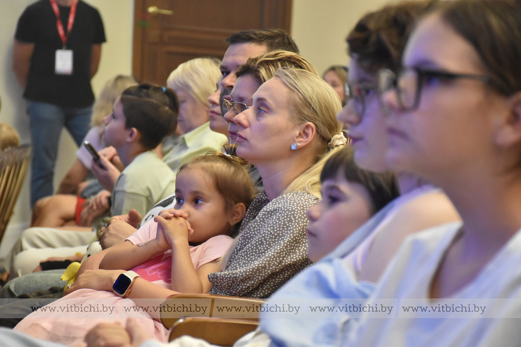 Второй год на фестиваль Союзное государство привозит проект для детей и взрослых. В программе XXXIV Международного фестиваля искусств «Славянский базар в Витебске» – мюзикл-шоу «Мечтатели», и он так и обозначен в программе: семейный. Действительно, в Концертном зале «Витебск», где состоялась премьера, зрителями в большинстве своем были родители со своими девочками и мальчиками. К тому же, спектакль можно назвать и социальным: посмотреть его пригласили ребят из многодетных семей, победителей различных олимпиад и престижных конкурсов из России и Беларуси, а также воспитывающихся в государственных социальных учреждениях.