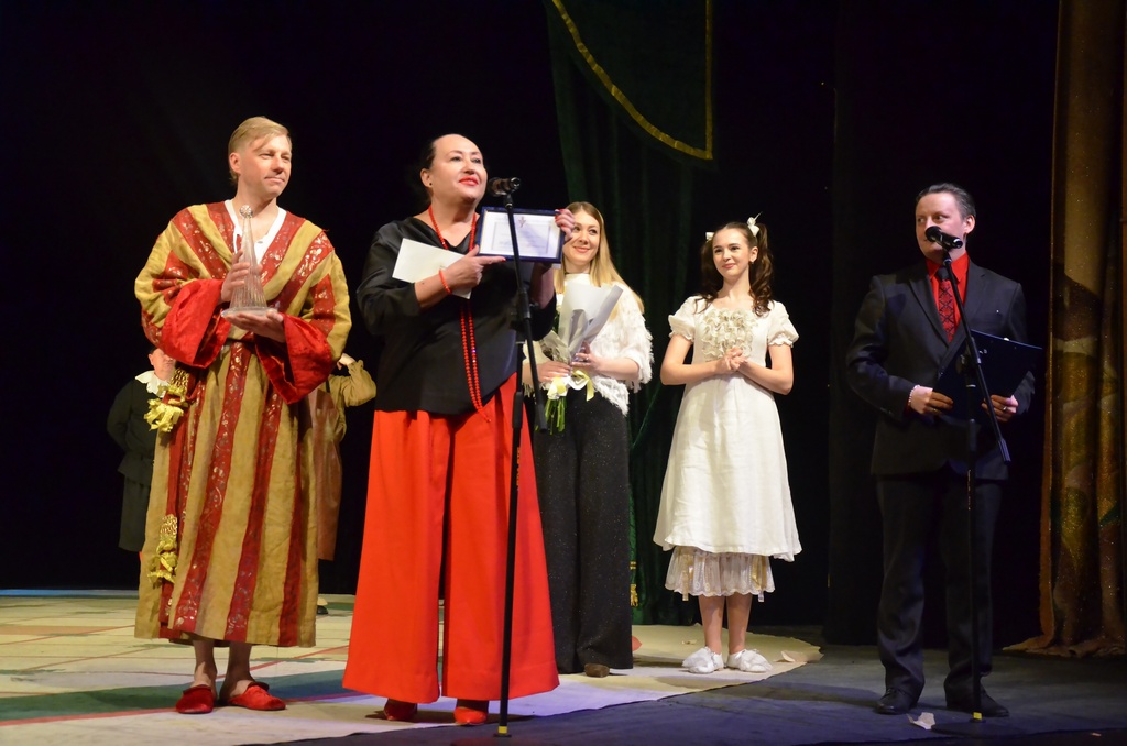 "Сёння ў Коласаўскім тэатры зоркі сышліся", – адзначыла Вераніка Ярмалінская. І гэта праўда, бо ў спектаклі "Нібыта хворы" ігралі актрысы, якія ў летась атрымалі прызы БСТД. У 2024 годзе "Крыштальнай Паўлінкай" была ўзнагароджаная заслужаная артыстка Рэспублікі Беларусь старшыня Віцебскай абласной арганізацыі БСТД Тацця Ліхачова. "Крыштальную зорку" атрымала адна са старэйшых артыстак тэатра Зінаіда Гурбо.
