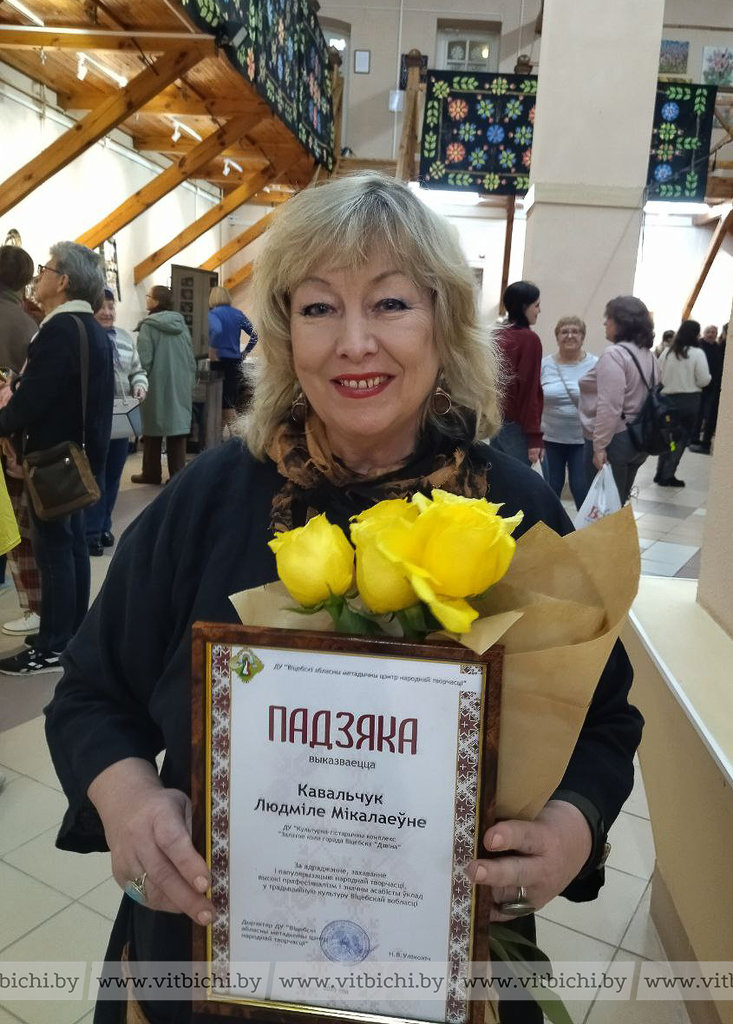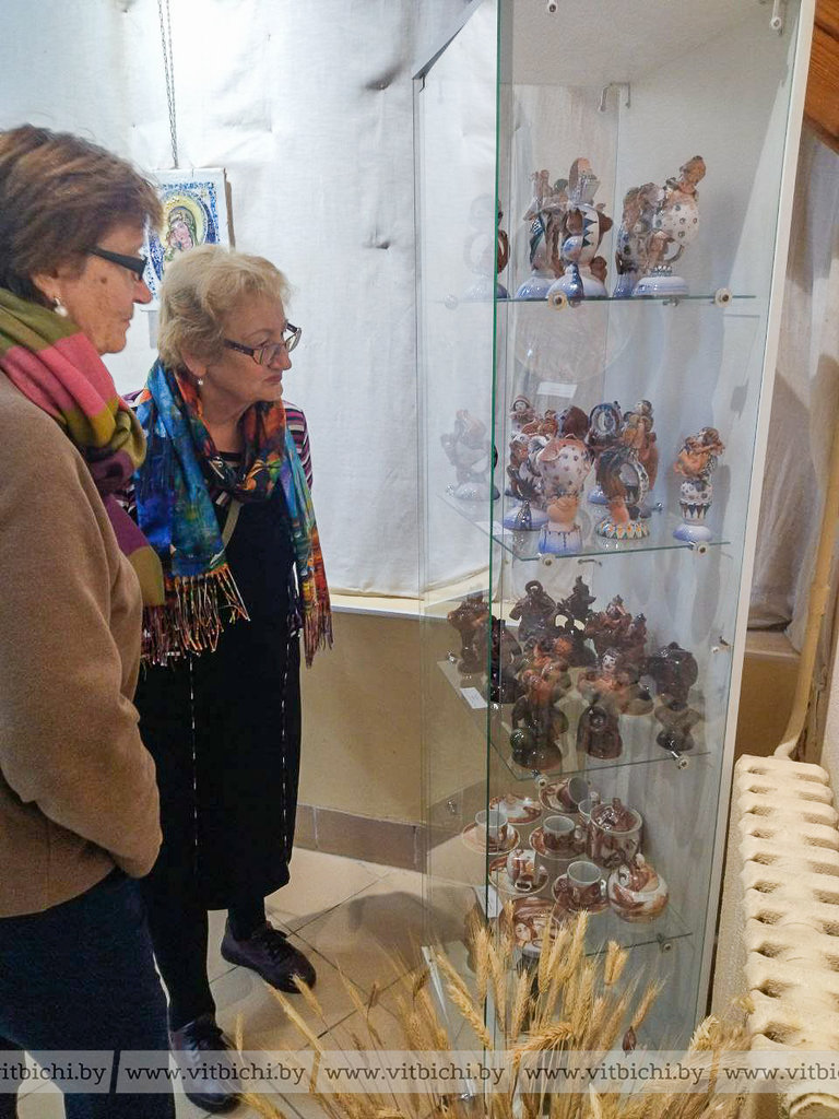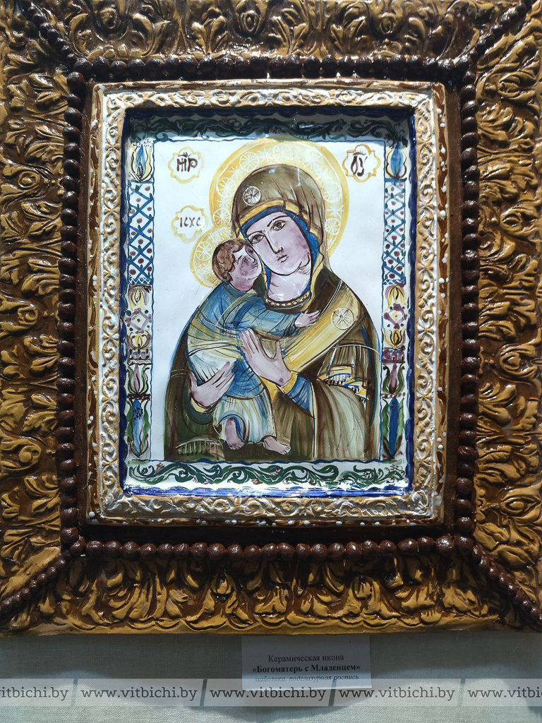 В культурно-историческом комплексе "Золотое кольцо города Витебска "Двина", где мастер работает многие годы, экспонируется большая коллекция произведений, выполненных в технике майолики, фарфора, шамота, бисквита. Это панно, блюда, оригинальные керамические композиции. Впервые автор представила майоликовые иконы.