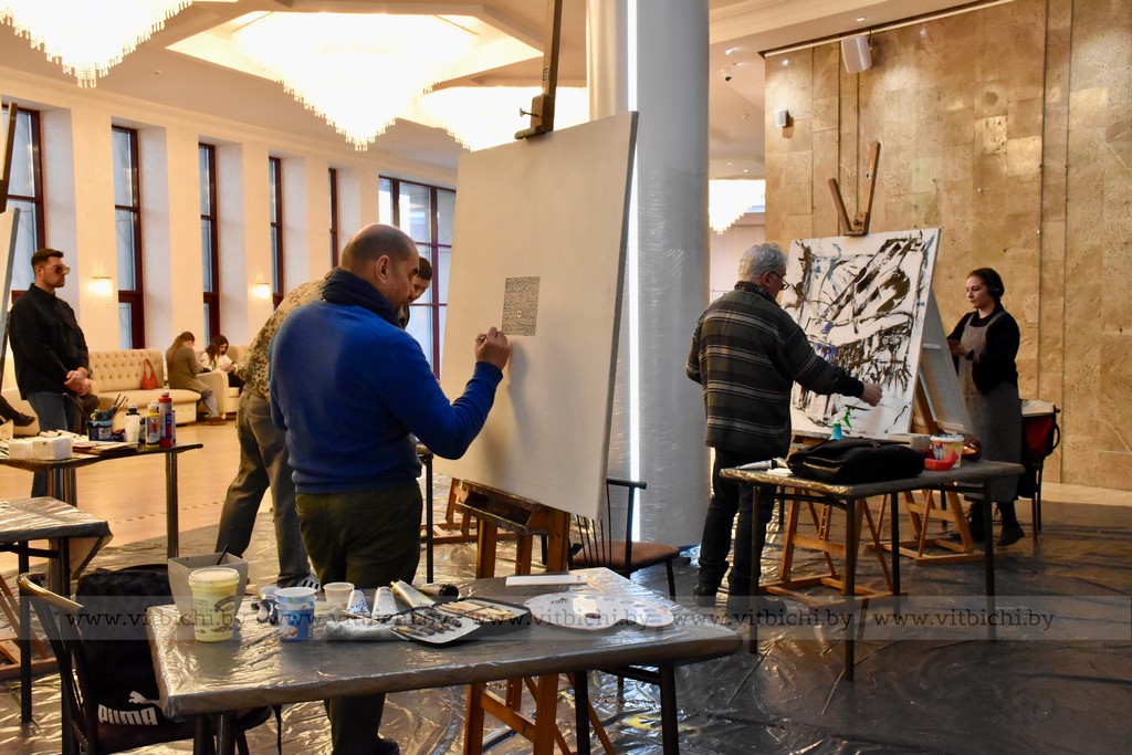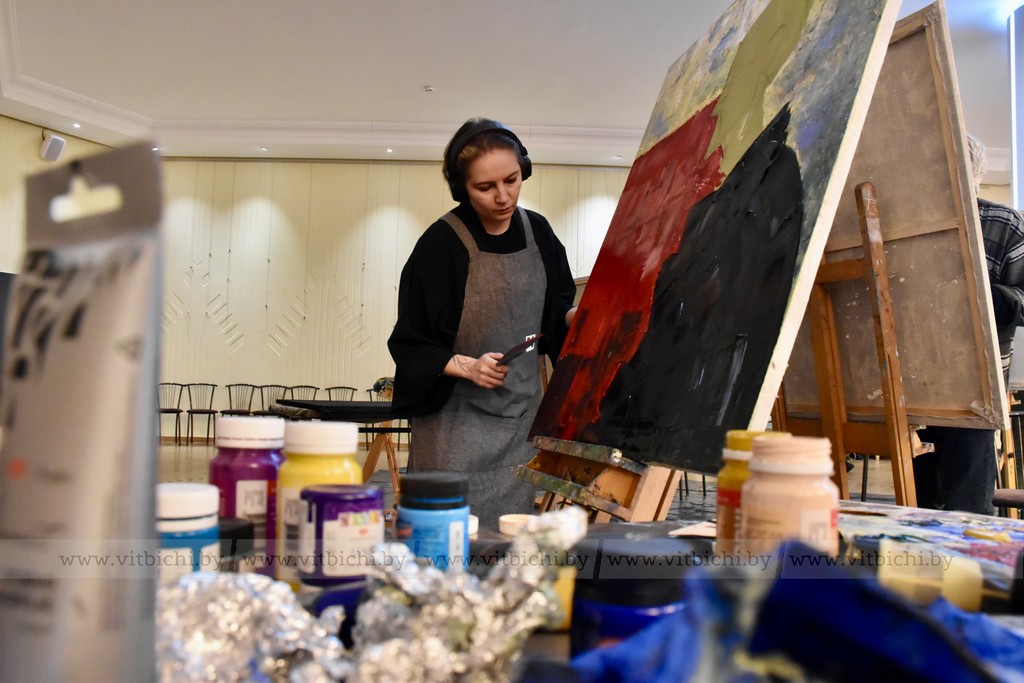 В концертном зале «Витебск» продолжается арт-баттл по теме «Сигнал Малевича». В творческом поединке помимо профессиональных художников впервые будут участвовать талантливые студенты.