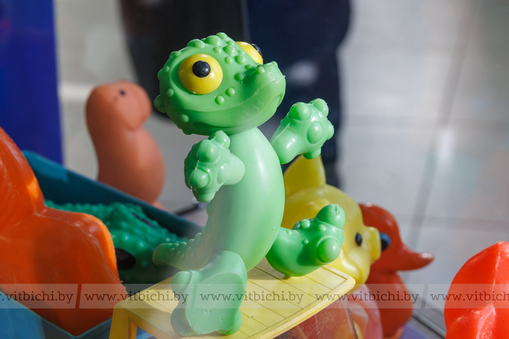 На выставке – огромное многообразие детских игрушек 1970-1980-х годов, которые, конечно же, во многом отличаются от игрушек сегодняшней детворы. А в те годы их выпускали такие советские фабрики, как Фрунзенская «Ак-Тимен», Краснодарская «Радуга», Новосибирский «Пионер», фабрика «Игрушка» в Вятке, «Ленигрушка» (Ленинград) и даже Охтинский химический завод «Охтален». Оказывается, у пупсов и коньков-качалок, плюшевых мишек и обезьянок, у водных пистолетов, тряпичного Буратино, резинового Крокодила Гены и Карлсона были авторы и создатели! К сожалению, их имена ничего не говорят сегодняшнему жителю, как, впрочем, оставались они в тени своих знаменитых героев и в свое время. И все же авторы экспозиции считают, что их нужно вспомнить, ведь только добрые, талантливые люди могли придумывать такое чудо для детей – игрушку! Это были советские художники и мастера Елена Борисова, Мария Киселёва, Лев Сморгон, Лев Разумовский, Марианна Мотовилова и многие другие.