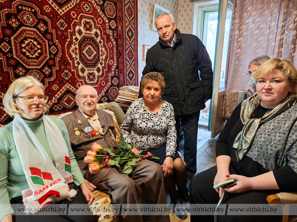 В день рождения ветерану вручили Почетную грамоту Витебского райисполкома, поблагодарили за личный вклад в духовно-моральное воспитание молодежи и активное участие в ветеранском движении Придвинья, пожелали крепкого здоровья, счастья и благополучия, а главное – радоваться каждому дню.
