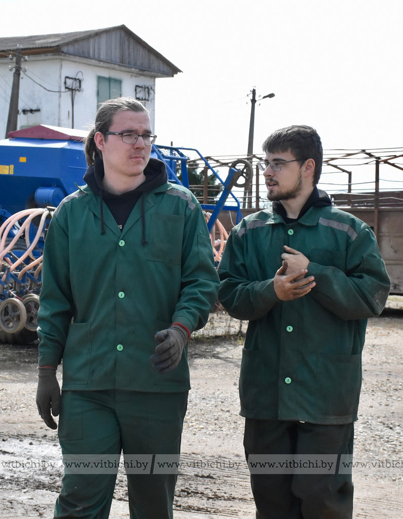 Пока Даниил Балышев усердствует на зерносушильном комплексе, его сверстники, выпускники Витебского государственного аграрно-технического колледжа Марат Романов и Кирилл Тросников, осваиваются на мехдворе. Под руководством опытных коллег занимаются ремонтом сельскохозяйственной техники. Молодые люди учились на одном курсе, вместе проходили производственную практику в этом хозяйстве. Рады, что путь в профессию начинают сообща. В хозяйство добираются на служебном транспорте из Витебска и агрогородка Октябрьская, где проживают с родителями.