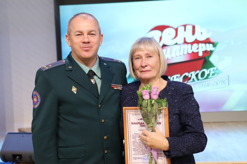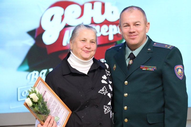 Из рук главного спасателя области родители и даже дедушка в знак признательности за достойное воспитание настоящих граждан Беларуси, с честью выполняющих профессиональный долг, получили 70 Благодарственных писем и цветы.