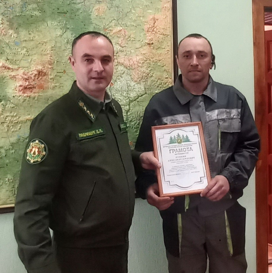 Александр принимал активное участие в разработке ветровально-буреломной древесины в Жлобинском лесхозе, за что и был отмечен грамотой Витебского ГПЛХО. Награду отличившемуся труженику вручил директор Суражского лесхоза Дмитрий Подлещук.