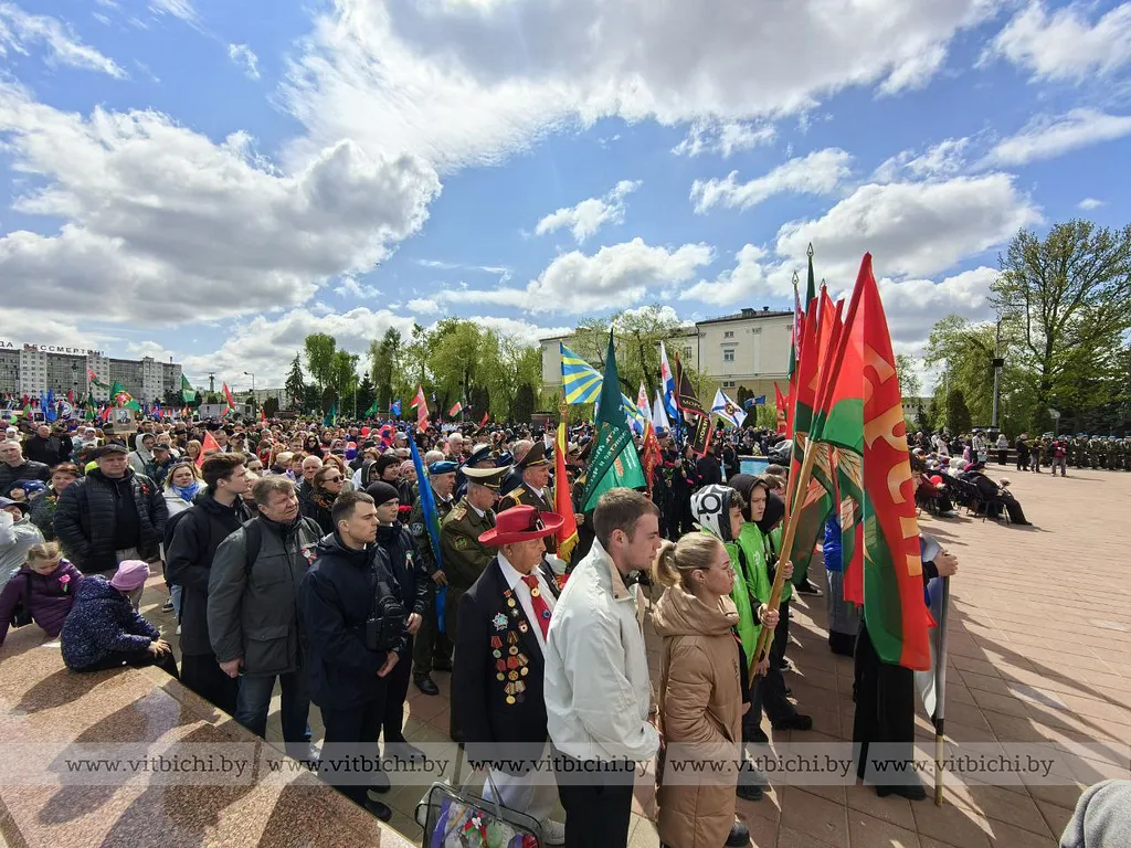 – Давайте помнить о прошлом и передавать память будущим поколениям, – призвал Александр Субботин собравшихся на площади и выразил уверенность: для большинства земляков быть 9 Мая на площади Победы в Витебске – семейная традиция. Тысячи людей по зову сердца приходят на мемориальный комплекс в честь советских воинов-освободителей, партизан и подпольщиков Витебщины, чтобы отдать дань памяти погибшим героям.