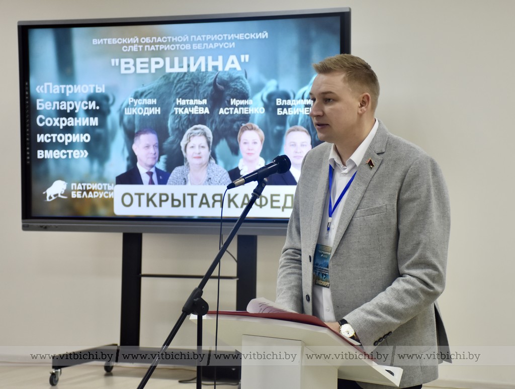 После чего в Витебской областной библиотеке имени В. И. Ленина началось мероприятие «Открытая кафедра» – доверительный разговор с участниками слета. В роли экспертов выступили депутаты Палаты представителей Национального собрания Республики Беларусь Владимир Бабичев (руководитель областной организации РОО «Патриоты Беларуси»), Руслан Шкодин и Ирина Астапенко, а также первый заместитель председателя правления областной структуры Белорусского общества «Знание» Наталья Ткачёва.