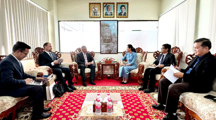 Чрезвычайный и Полномочный Посол Республики Беларусь в Социалистической Республике Вьетнам и в Королевстве Камбоджа по совместительству Владимир Боровиков в г.Пномпене встретился с государственным секретарем Министерства торговли Камбоджи Текрет Камранг. Об этом корреспонденту БЕЛТА рассказали в пресс-службе белорусского внешнеполитического ведомства.