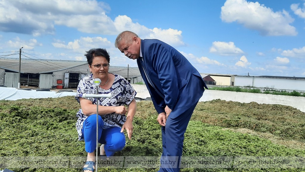 С ходом косовицы на этом производственном участке, а также закладкой сенажа в траншею ознакомился первый заместитель председателя Витебского райисполкома – начальник управления по сельскому хозяйству и продовольствию Петр Коренкович.