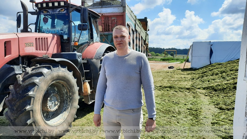 Травостой в этом году, по словам бригадира, хороший, в разы лучше, чем в прошлом. На урожайность трав повлияли не только нужное количество осадков, но и своевременная их подкормка карбамидо-аммиачной смесью весной. В результате люцерна, овсяница луговая, да и клевер с тимофеевкой выросли неплохие. Это подтверждают и работавшие в поле трактористы-машинисты Павел Грунтов и Андрей Смоляк. В среднем за день Андрей делает по 10–12 рейсов, перевозя свыше 100 тонн сенажа. Павел задействован на кормозаготовке уже пятый сезон. Во время жатвы он будет убирать хлеб, а вообще этому не по годам опытному аграрию подвластна любая сельскохозяйственная техника, в том числе и энергонасыщенная.