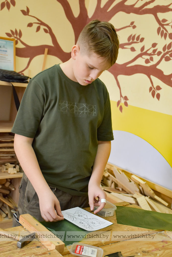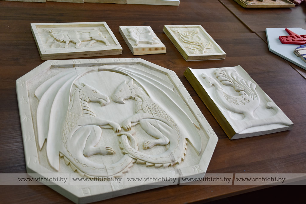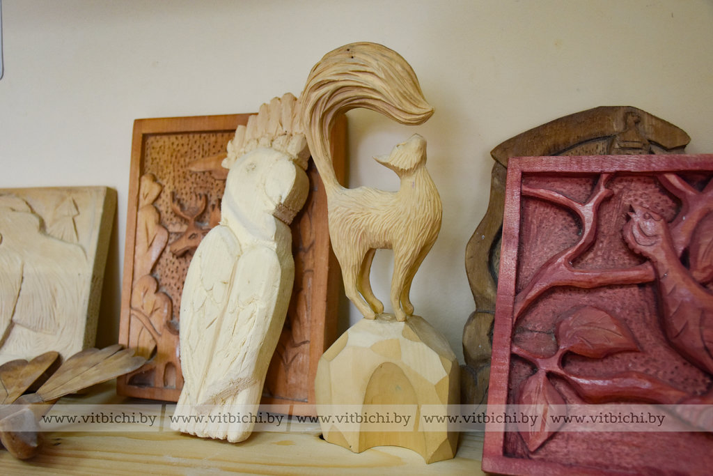 Например, Вениамин Бородако из СШ № 1 г. Докшицы имени И. С. Полевого подготовил два панно – с лошадью и совами. На изготовление каждого у двенадцатилетнего школьника ушло более месяца. Резьбой мальчик занимается уже два года, любовь к этому виду декоративно-прикладного искусства ему привил отец.