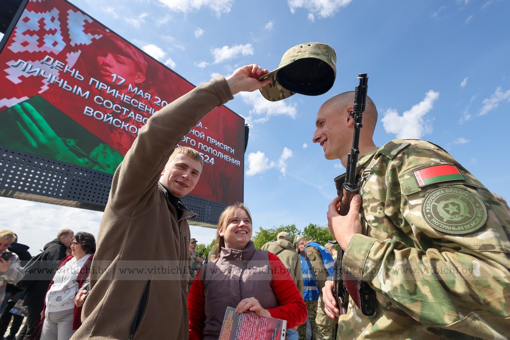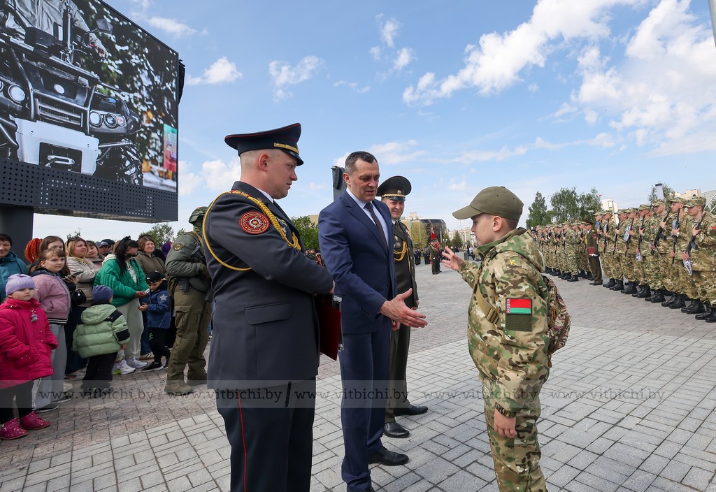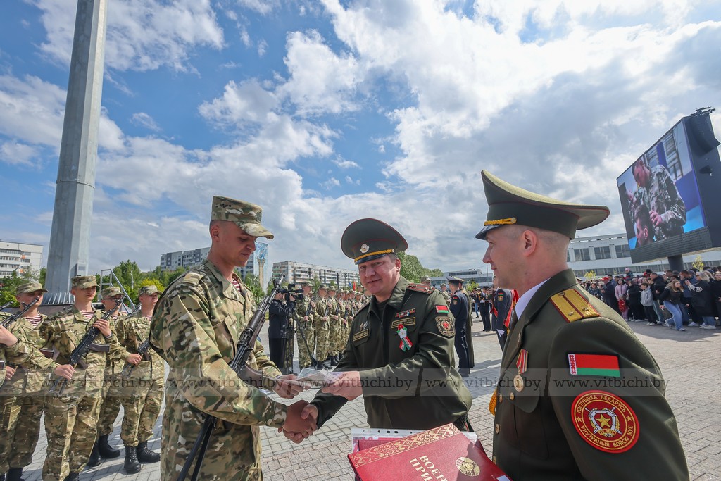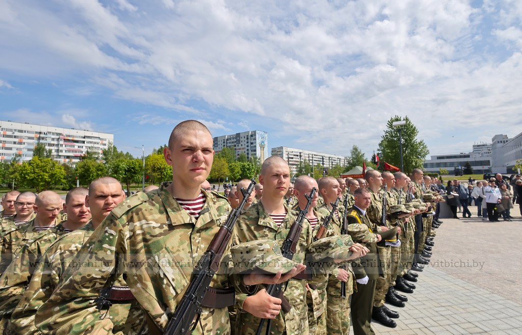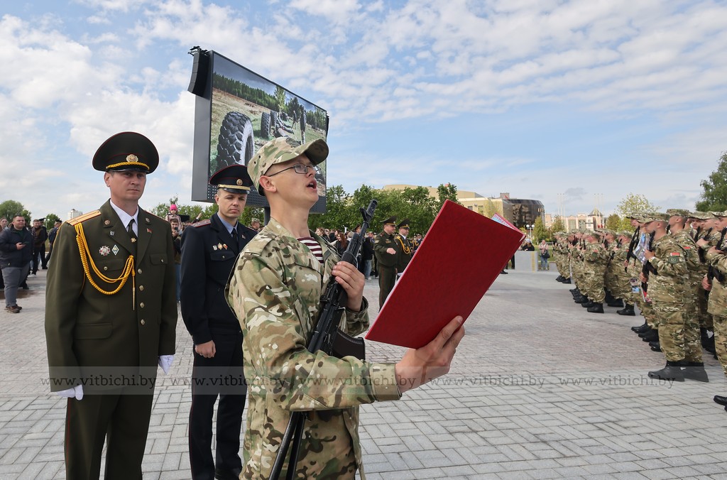 17 мая / «Витьбичи» / Юлия Прищепа /. Церемония принятия военной присяги новым пополнением войсковой части 5524 прошла на недавно открытой площади Флага и Герба.