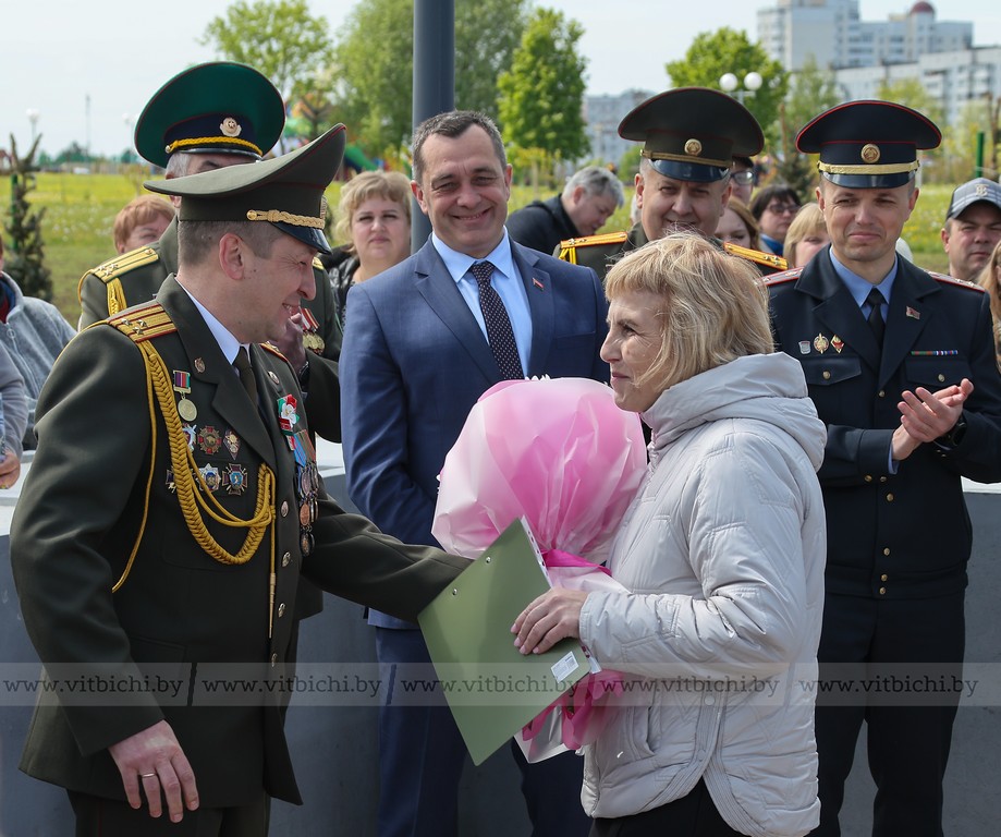 На новой площади выступили воспитанники Полоцкого военно-патриотического клуба «Рубеж» и духовой оркестр войсковой части 5530.