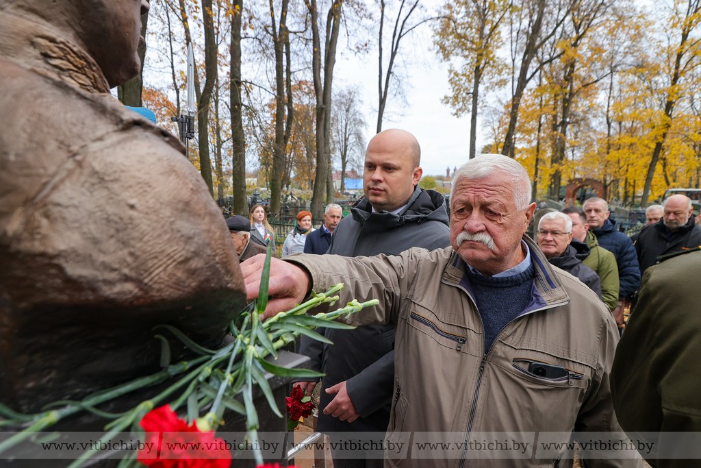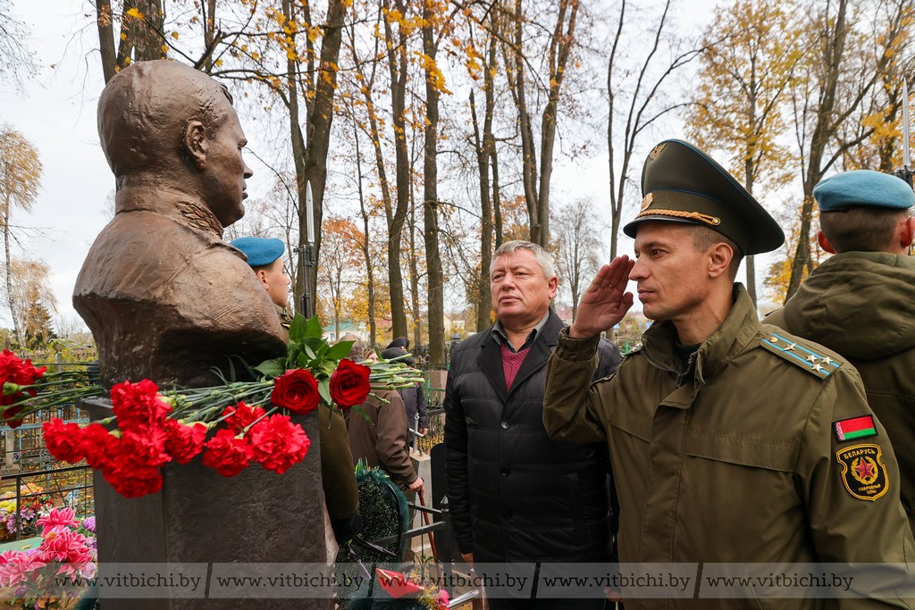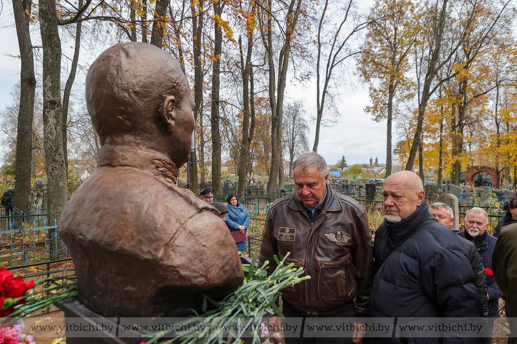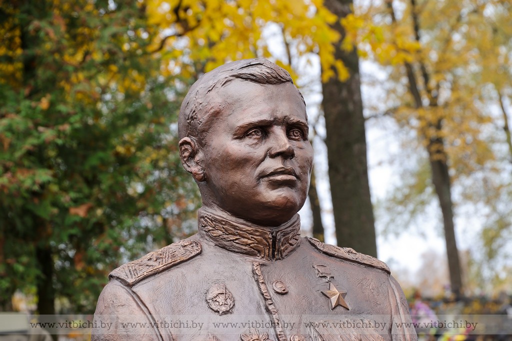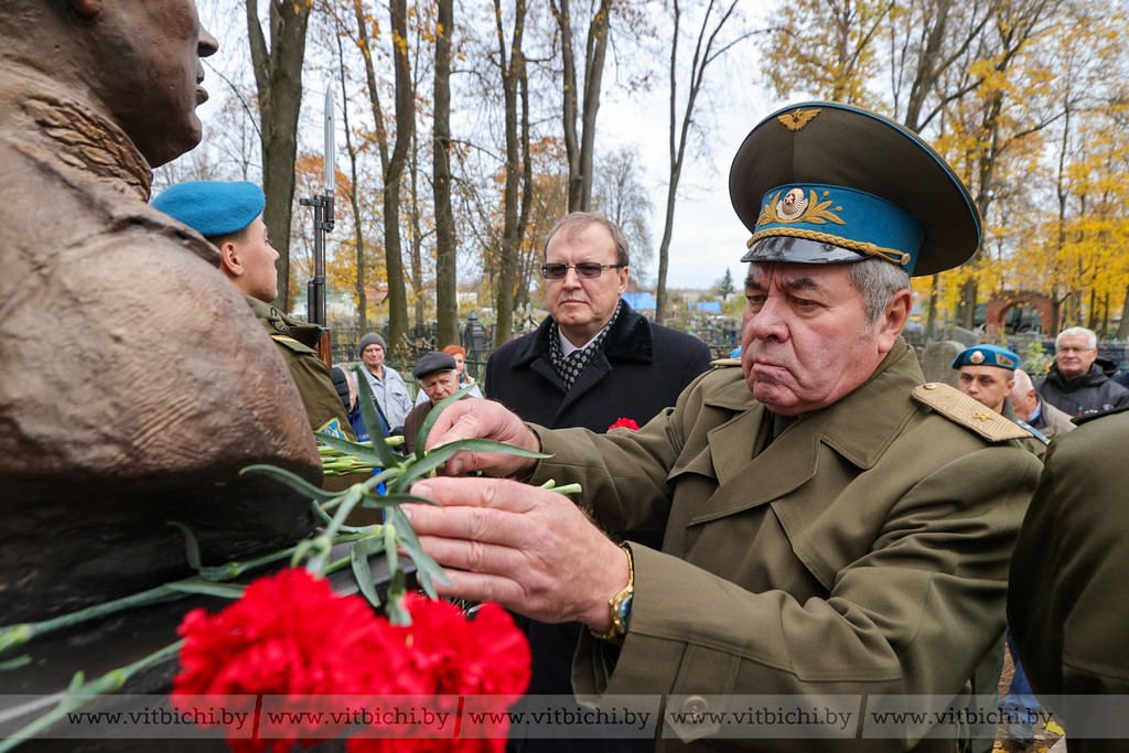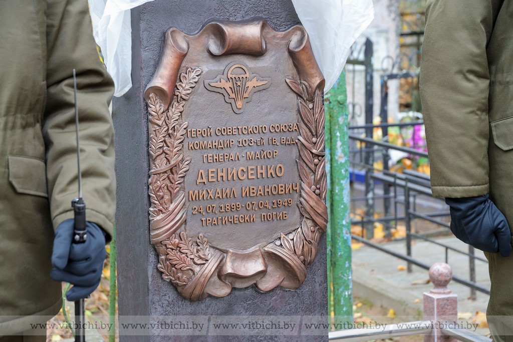 24 октября/ "Витьбичи" / Виталий Сеньков /. На Старо-Семёновском кладбище в Витебске, где похоронен советский военачальник Михаил Иванович Денисенко, состоялась церемония открытия бюста, установленного на могиле героя.