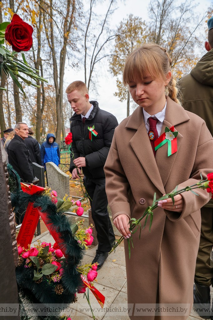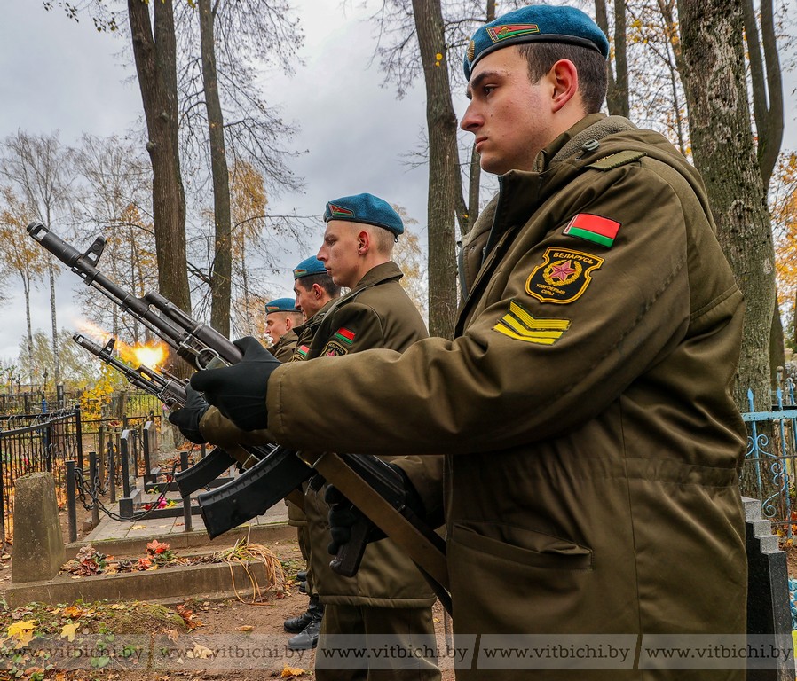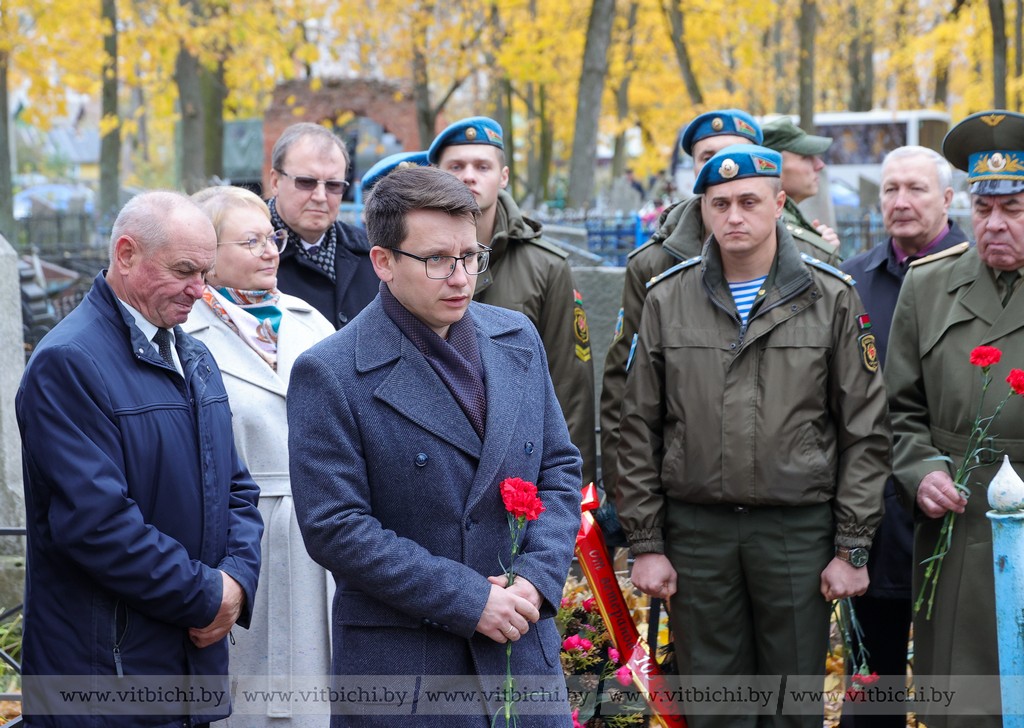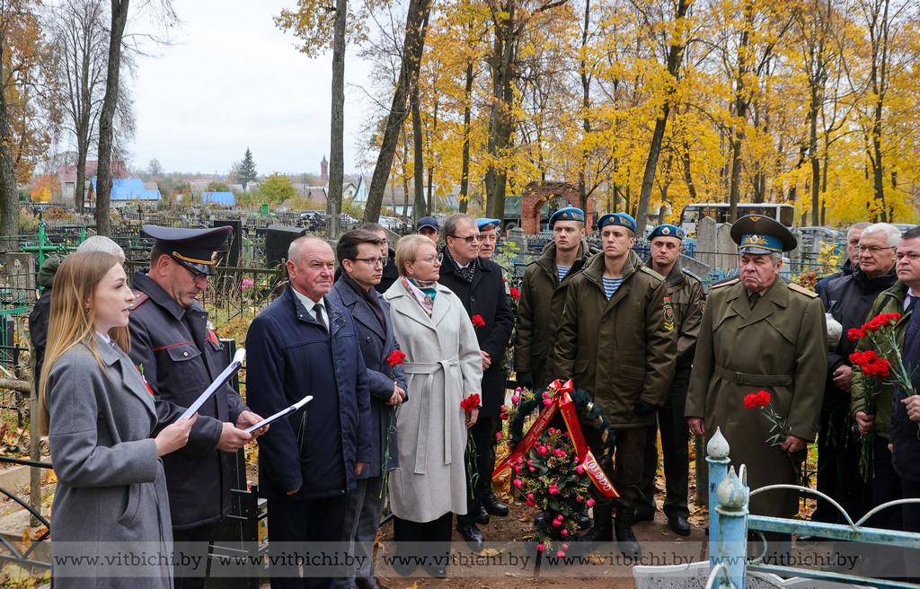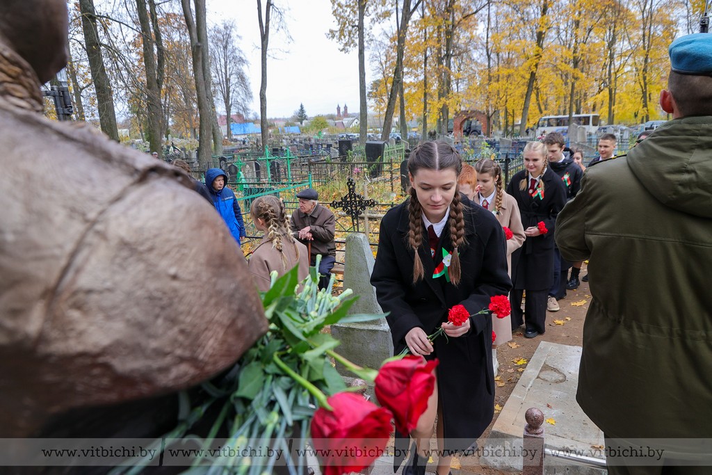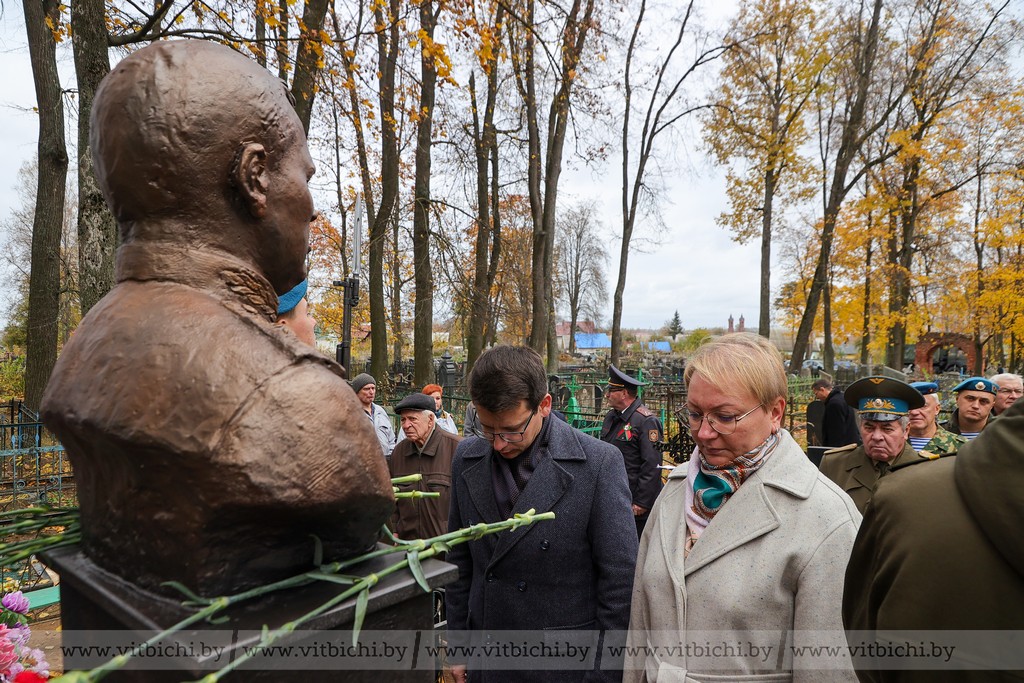 24 октября/ "Витьбичи" / Виталий Сеньков /. На Старо-Семёновском кладбище в Витебске, где похоронен советский военачальник Михаил Иванович Денисенко, состоялась церемония открытия бюста, установленного на могиле героя.
