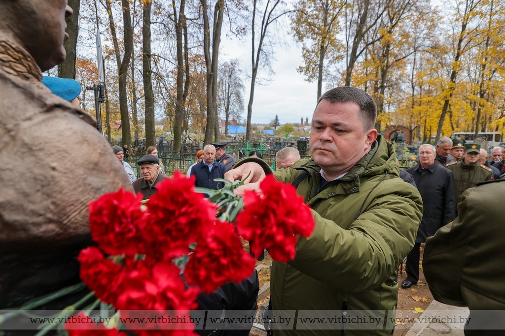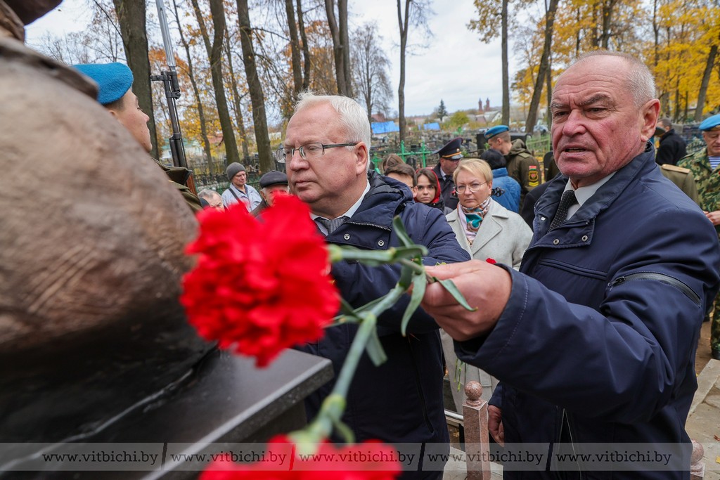 Состоялся торжественный митинг. Председатель Витебской областной организации Белорусского союза ветеранов войны в Афганистане Валерьян Мацкевич выразил благодарность предприятиям-спонсорам – ООО «Альянспласт», ОАО «Конструкторское бюро «Дисплей», РУП «Витебский центр стандартизации, метрологии и сертификации» – а также военнослужащим сил специальных операций Вооруженных Сил Республики Беларусь, благодаря которым стало возможным открытие бюста.