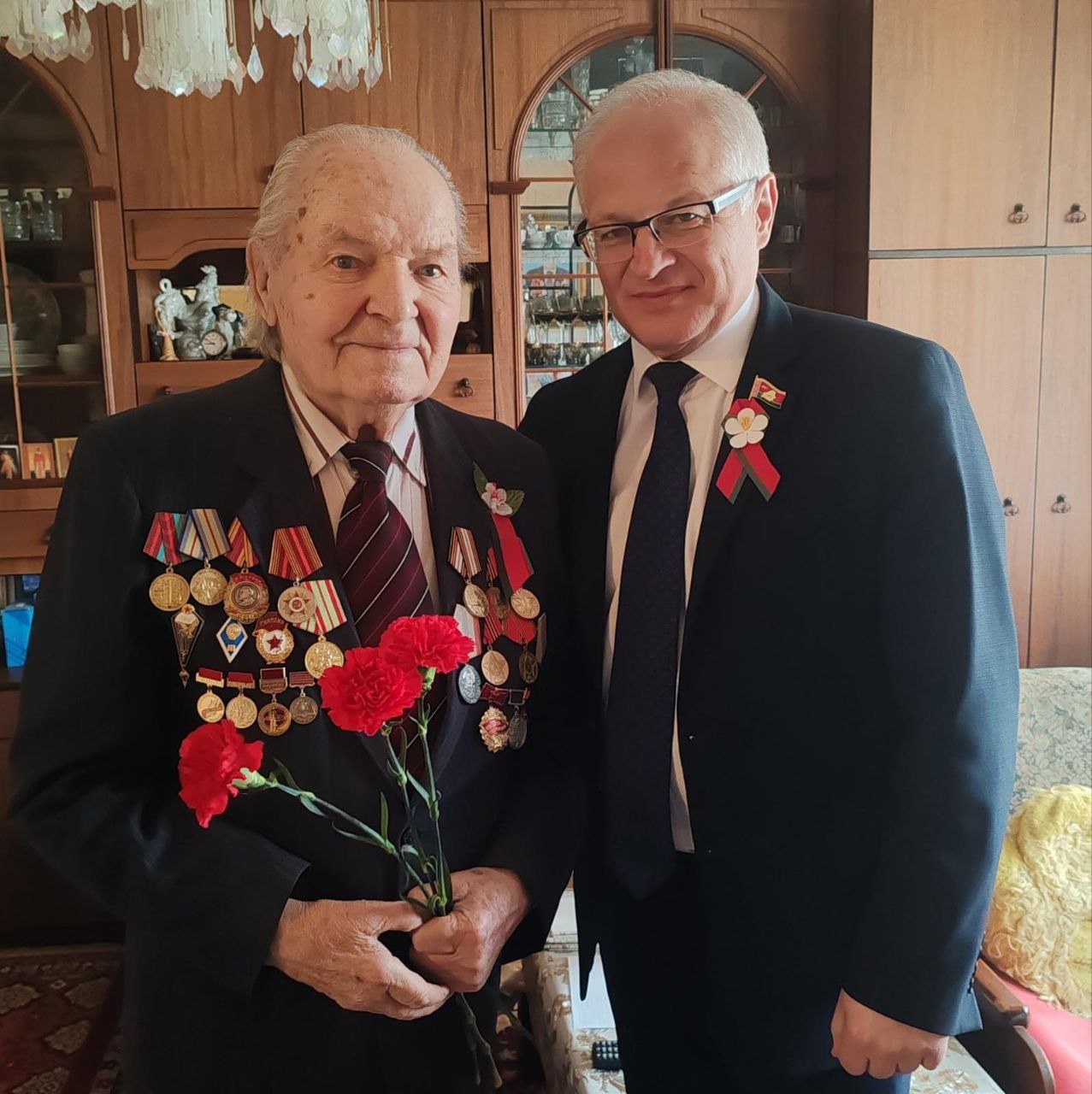 8 мая / «Витьбичи» /. С Днем Победы узника концлагерей, ветерана профсоюзного движения 96-летнего Петра Романовича Масленникова из Витебска поздравил на дому председатель Витебского областного объединения профсоюзов Юрий Деркач.