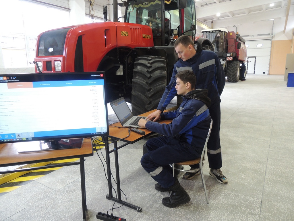 Учащиеся приобретают навыки вождения на учебных автотренажерах, воспроизводящих кабину трактора «Беларус-1221» и зерноуборочногого комбайна «Вектор» с системой управления и приборами. А электронная голосовая система оповещает ребят о допущенных ошибках в управлении комбайном или трактором, заменяя наставника. Учебные классы оборудованы мультибордами, персональными компьютерными местами, где учащиеся изучают двигатели в разрезе. Укреплена база диагностической лаборатории колледжа.