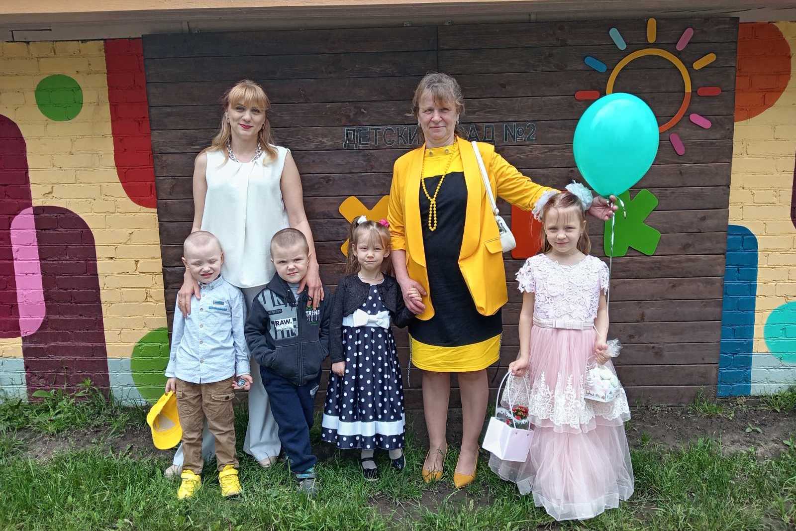 Любовь Курневич с семьёй Татьяны и младшей дочкой Ритой (в платье в горошек).