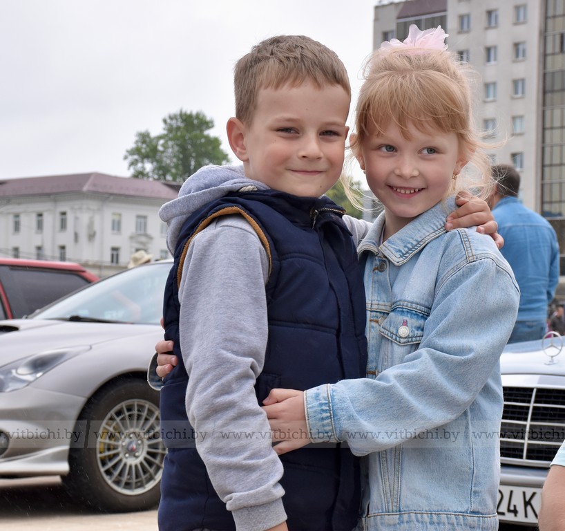 Витебчанин Сергей – участник выставки «Авторетро-2025», с ним на празднике дети Арина и Миша, близкие люди.