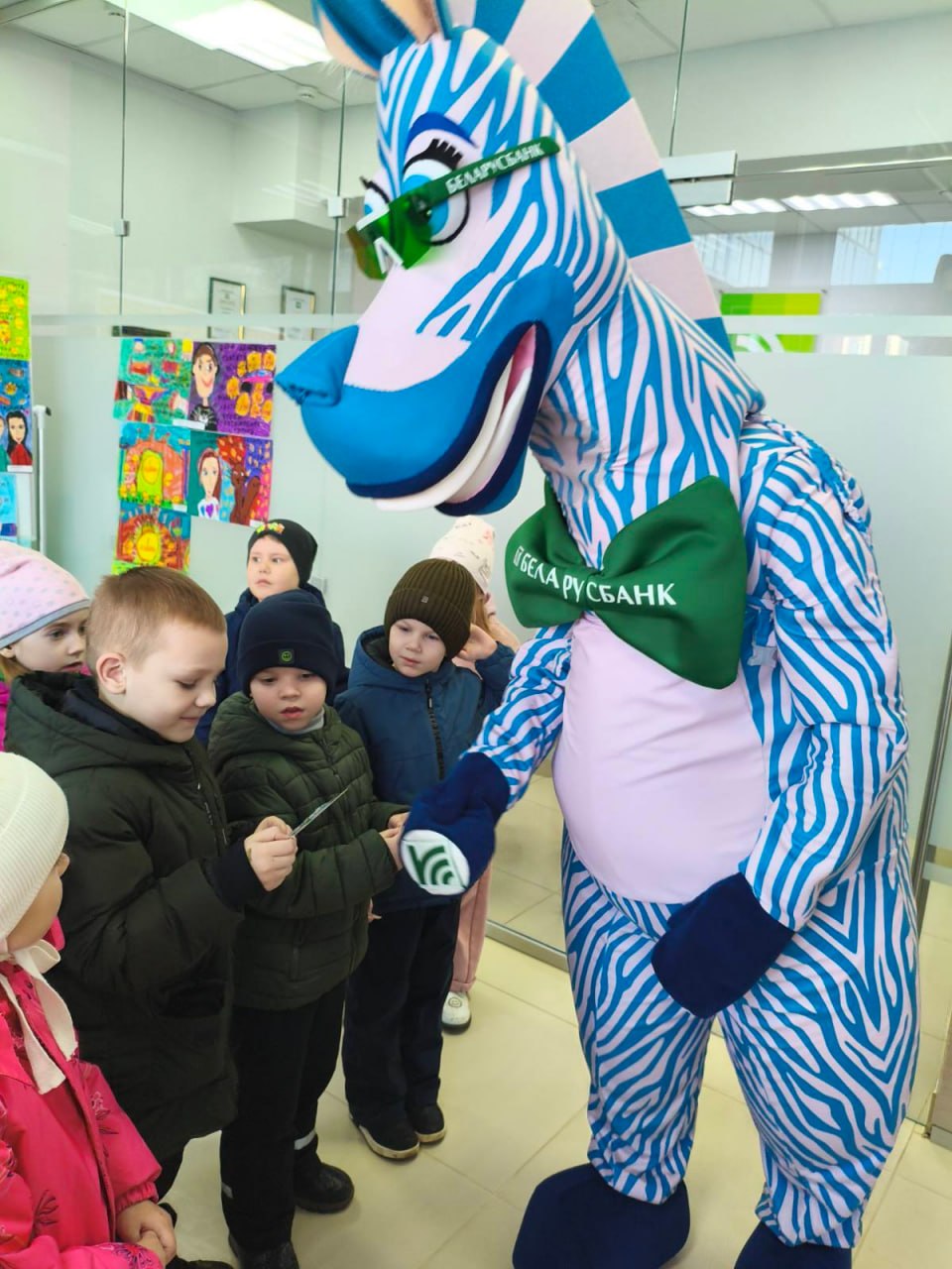 Встреча завершилась на теплой ноте: дети получили памятные подарки и сфотографировались с веселой Зеброй – символом финансовой безопасности.