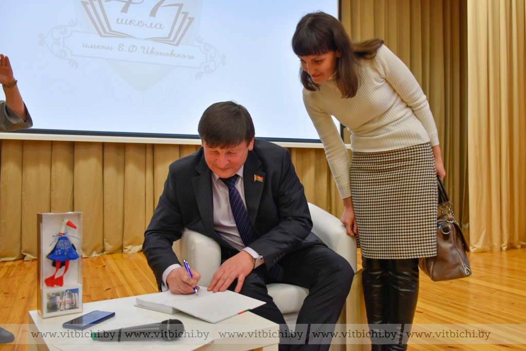 Председатель Постоянной комиссии Палаты представителей Национального собрания Республики Беларусь по образованию, культуре и науке, член-корреспондент Национальной академии наук Беларуси, доктор исторических наук, профессор Игорь Марзалюк провел диалоговую площадку в средней школе № 47 Витебска имени Е. Ф. Ивановского.