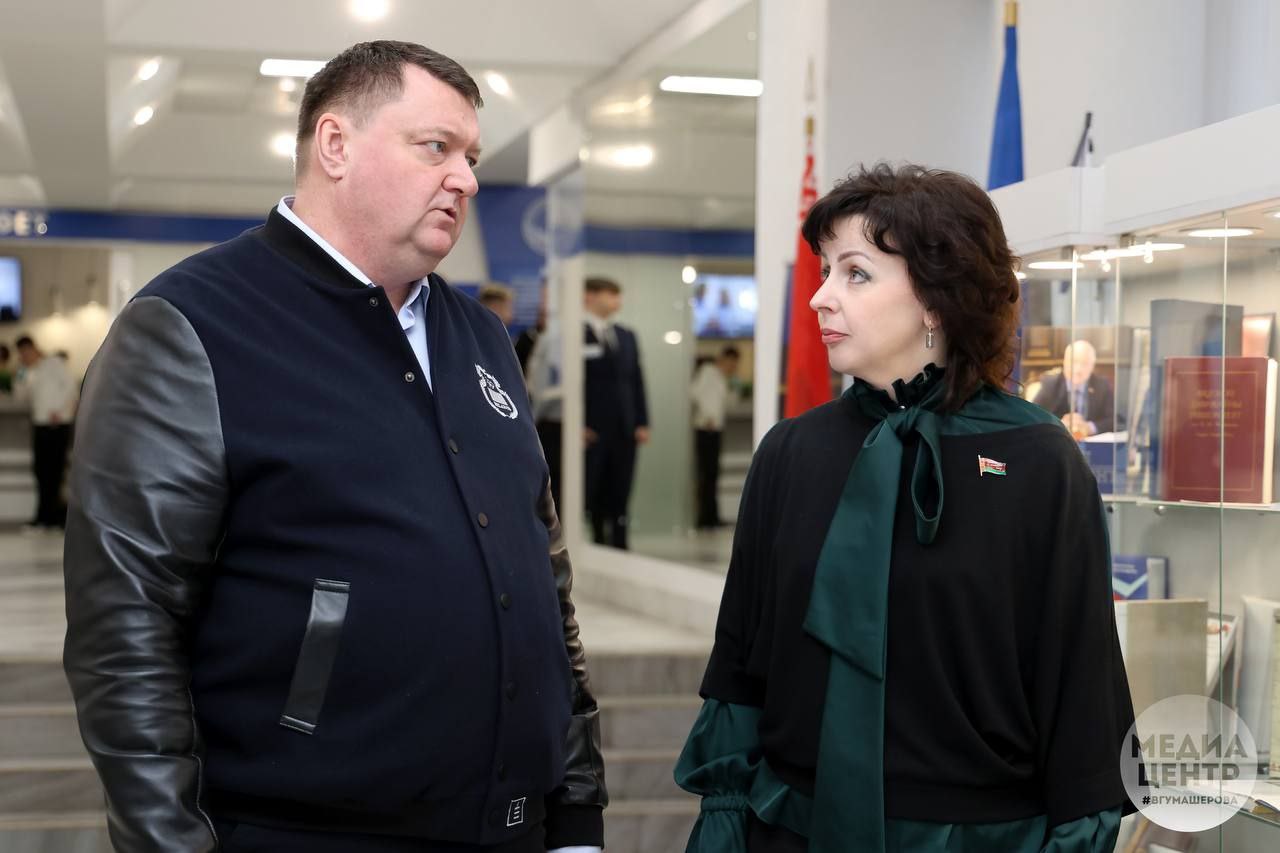 В университете им Машерова Дмитрий Довгаленок совместно с начальником управления спорта и туризма Денисом Фатеевым посетили главный корпус вуза. Ректор университета Валентина Богатырева провела экскурсию и рассказала о достижениях ВГУ в науке и в спорте.