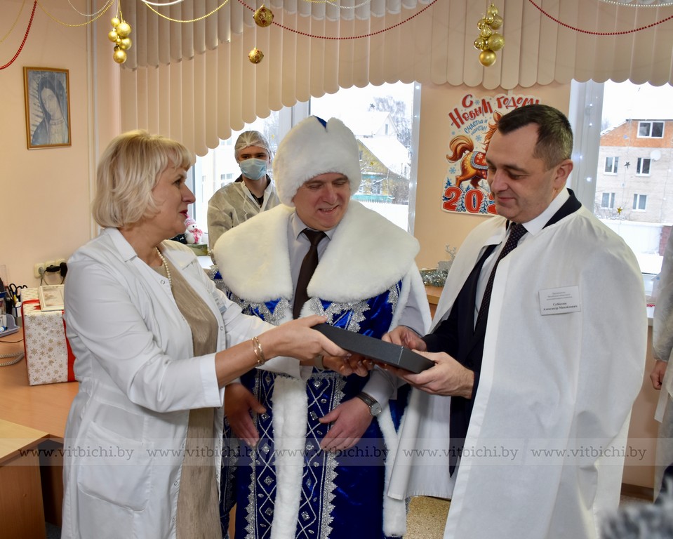 В рамках республиканской акции «Наши дети» с душевными поздравлениями и подарками в этот роддом заглянули Дед Мороз и Снегурочка. По сложившейся доброй традиции в их роли выступили заместитель председателя Витебского облисполкома Вячеслав Дурнов и председатель Витебского областного отделения Белорусской партии «Белая Русь», ректор ВГУ имени П. М. Машерова Валентина Богатырёва. Вместе с добрыми волшебниками к 18 мамам и их 20 новорожденным с добрыми пожеланиями и презентами пришли также председатель Витебского облисполкома Александр Субботин и начальник главного управления по здравоохранению облисполкома Михаил Вишневецкий.