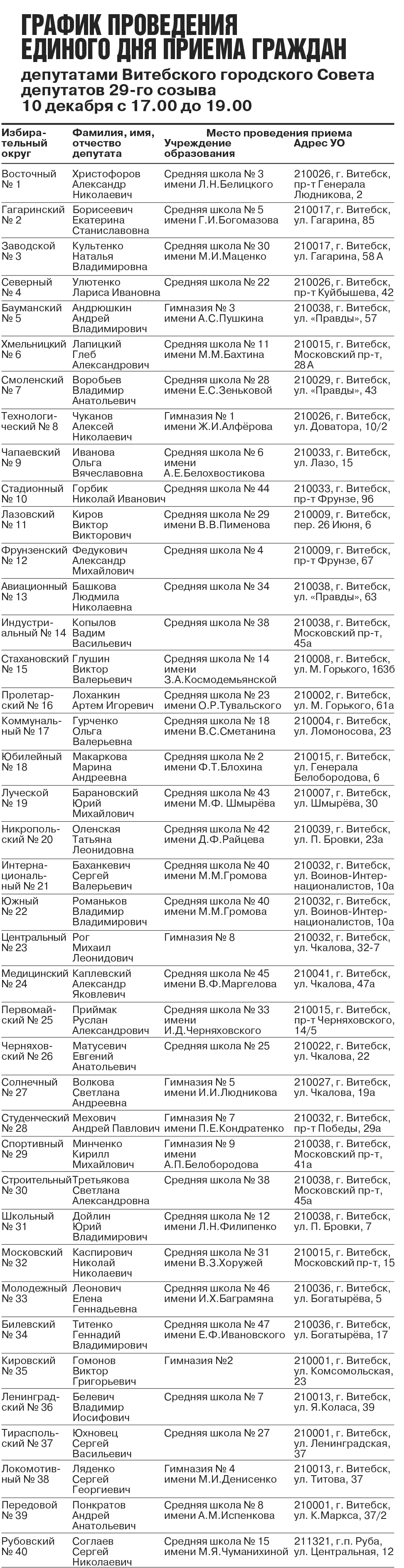 6 декабря / "Витьбичи" / . Единый день депутата пройдет в Витебске 10 декабря.