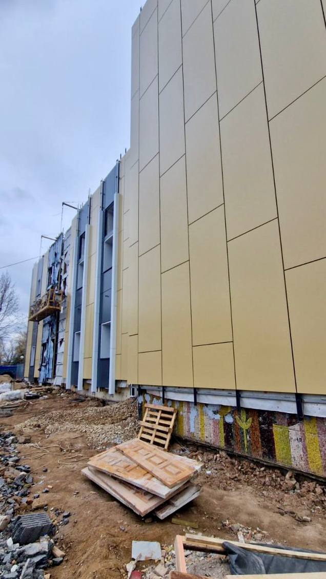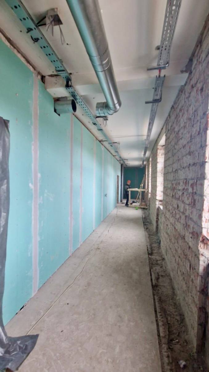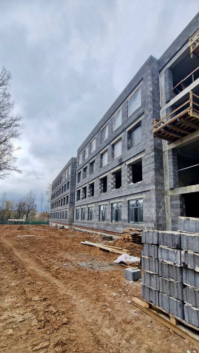 В здании гимназии на ул. 1-я Доватора, 10/2 завершаются работы по возведению монолитного участка здания и работы по устройству кровли нового корпуса здания, производятся общестроительные работы, устройство вентилируемого фасада, замена оконных блоков и прокладка инженерных коммуникаций.