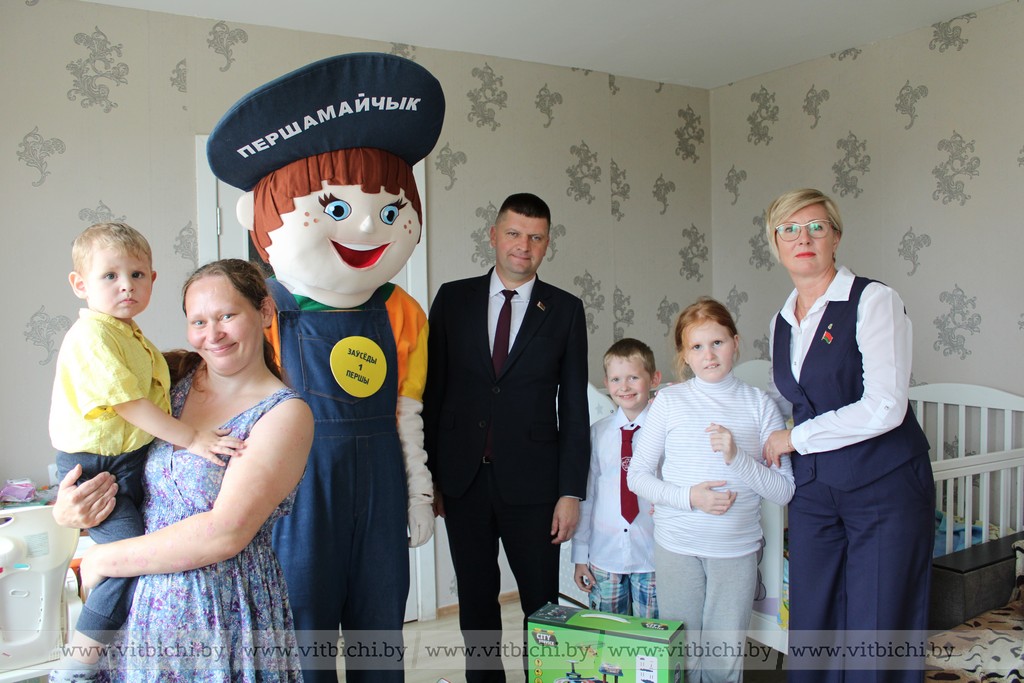 2 сентября/ "Витьбичи"/ Светлана Любочка/. Вместе с представителями партии «Белая Русь» Евгений Семёнычев побывал в гостях у Антонины и Руслана Карпенко, проживающих в микрорайоне Билево и воспитывающих пятерых детей.