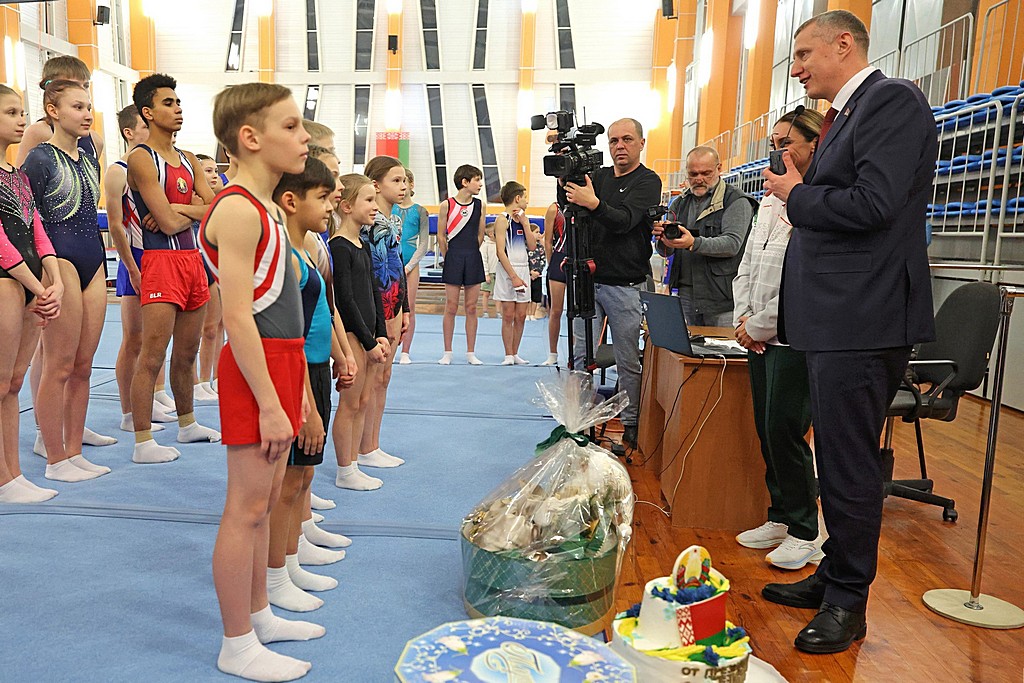 Дмитрий Крутой пообщался с заслуженным тренером Республики Беларусь Ольгой Власовой, поинтересовался условиями для подготовки спортсменов и обратился к воспитанникам со словами поздравления с прошедшими праздниками от имени Президента Беларуси: