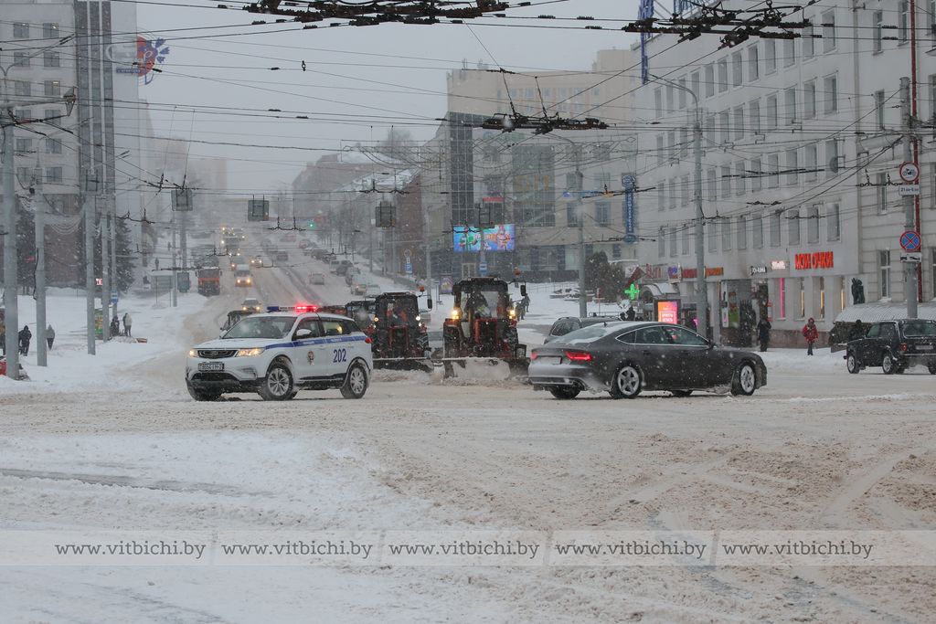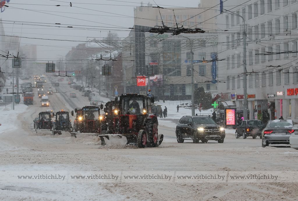 - Для устранения последствий обильного снегопада привлечены ресурсы предприятий города Витебска всех форм собственности: 148 единиц техники, 452 человека.