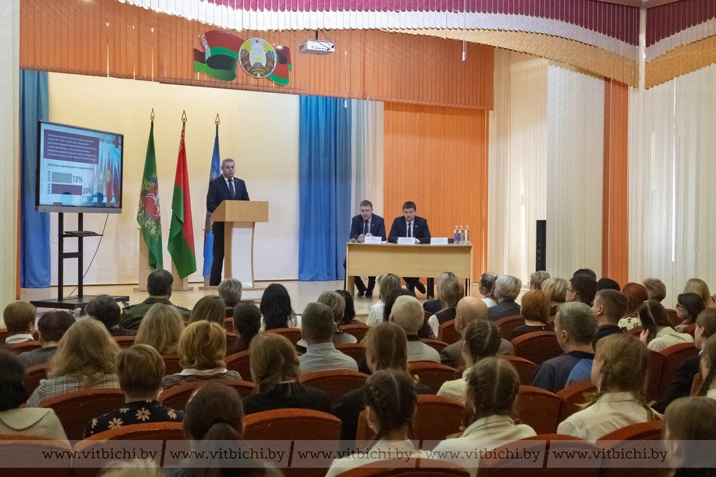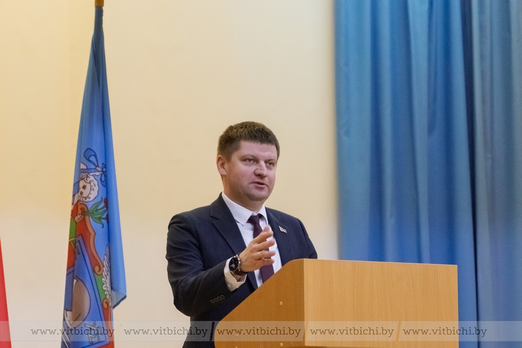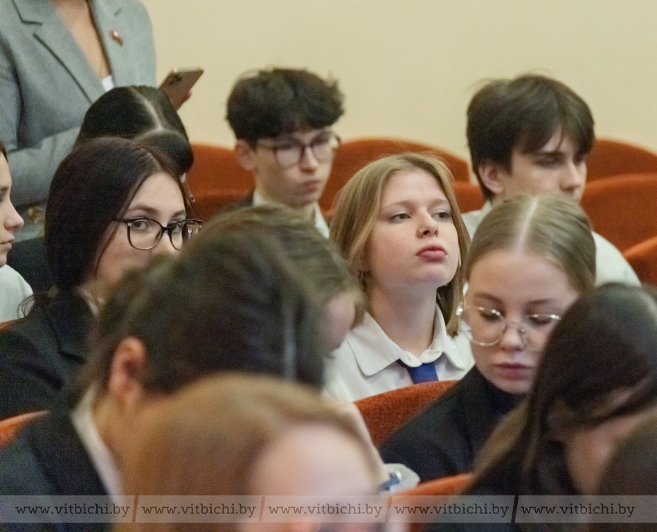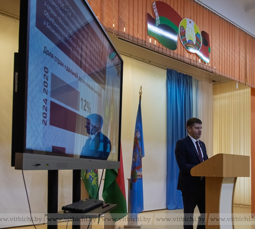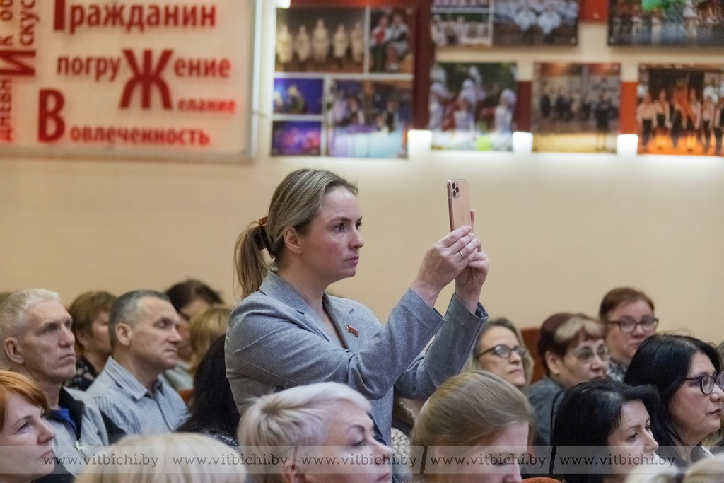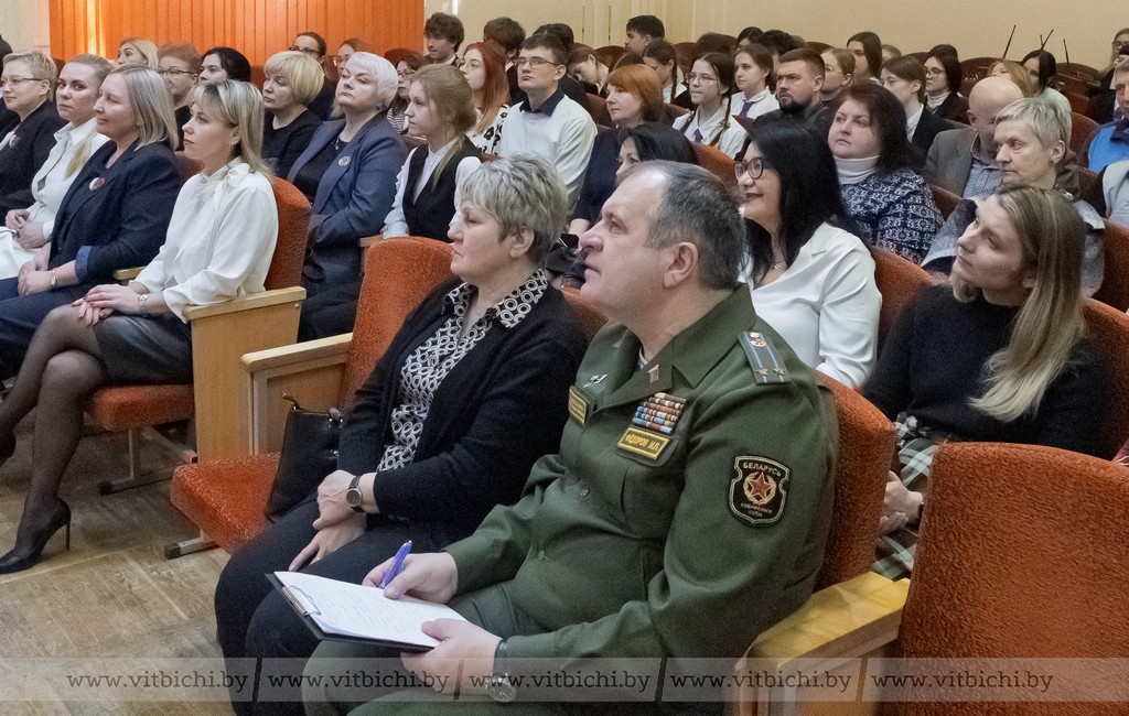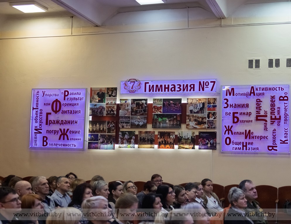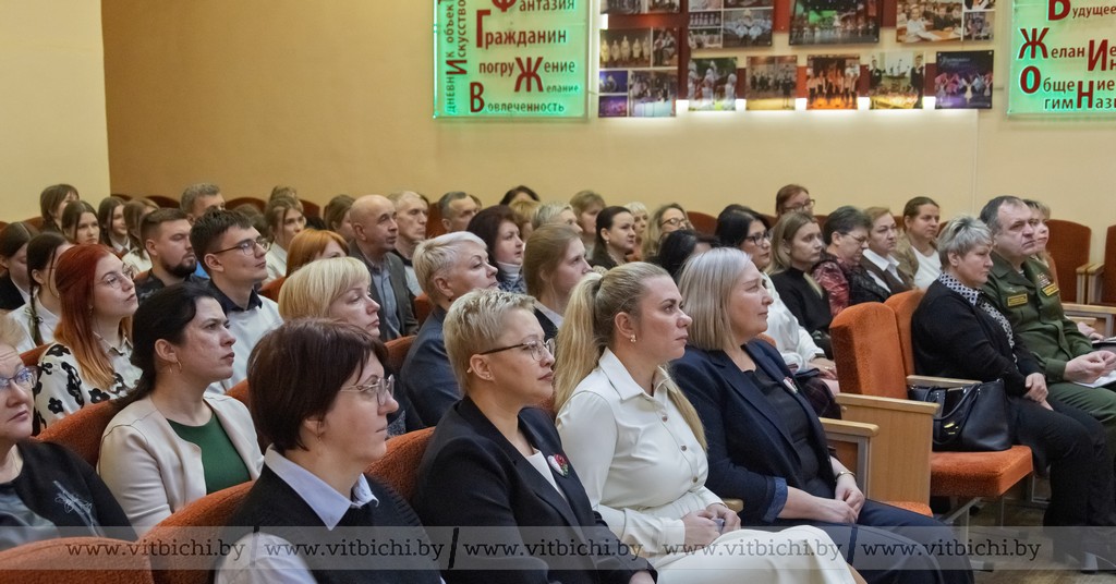27 февраля / «Витьбичи» / Виталий Сеньков /. Информационно-пропагандистская группа под руководством главы администрации Первомайского района Евгения Семёнычева выступила перед педагогами и учащимися гимназии № 7 Витебска имени П. Е. Кондратенко. Встреча прошла в рамках единого дня информирования «Итоги завершающейся пятилетки как основа стратегии успешного развития нашей страны».