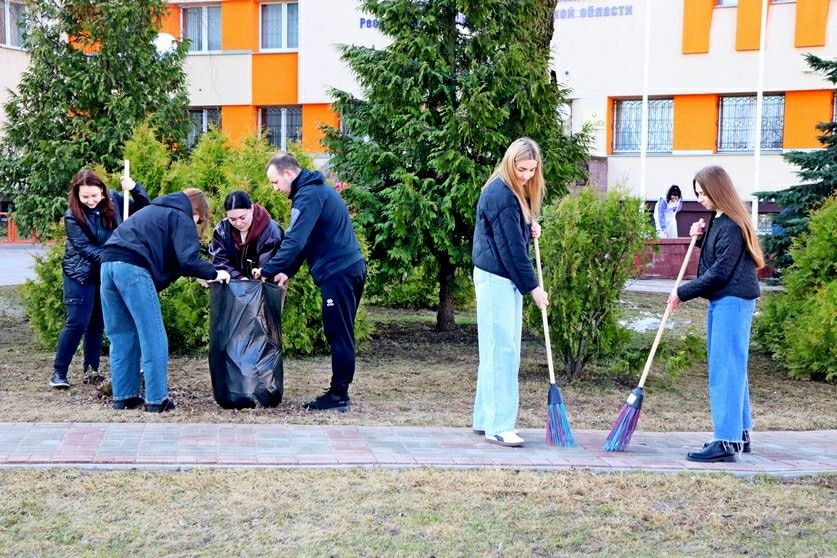 Возглавил команду заместитель начальника УСК Виталий Хвесюк. Вместе сотрудники подмели дорожки, очистили газоны от прошлогодней листвы, веток и мусора. Помимо этого, навели порядок в рабочих кабинетах.