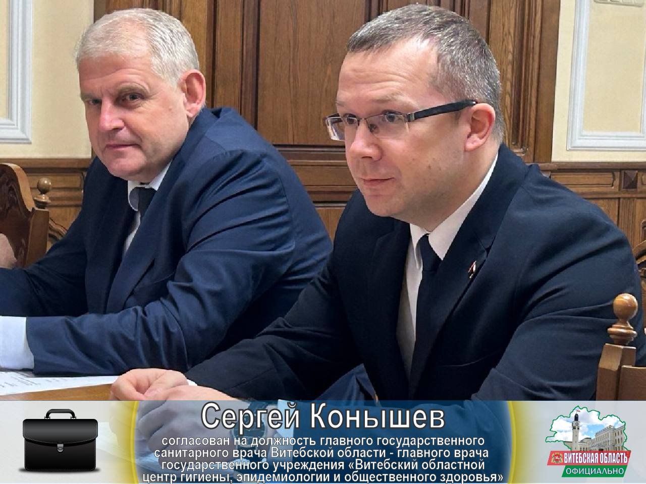 - Сергея Конышева на должность главного государственного санитарного врача Витебской области - главного врача государственного учреждения «Витебский областной центр гигиены, эпидемиологии и общественного здоровья»;