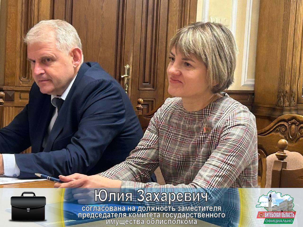 - Юлии Захаревич на должность заместителя председателя комитета государственного имущества облисполкома;