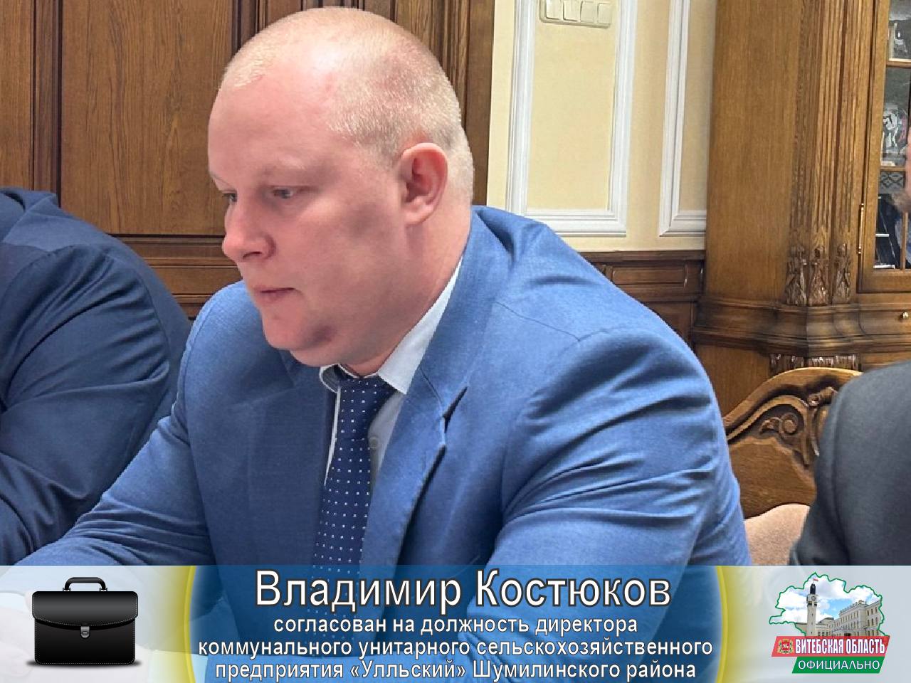 - Владимира Костюкова на должность директора КУСП «Ульский» Шумилинского района.