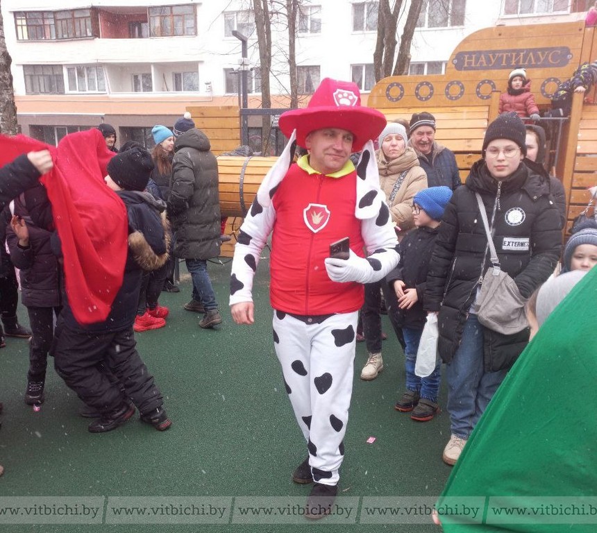В Октябрьском районе это была самая большая площадка для народного гулянья. Ряженые, клоуны, ростовые куклы в костюмах забавных зверюшек завлекали людей на различные площадки, дети с удовольствием совершали прогулки на пони.